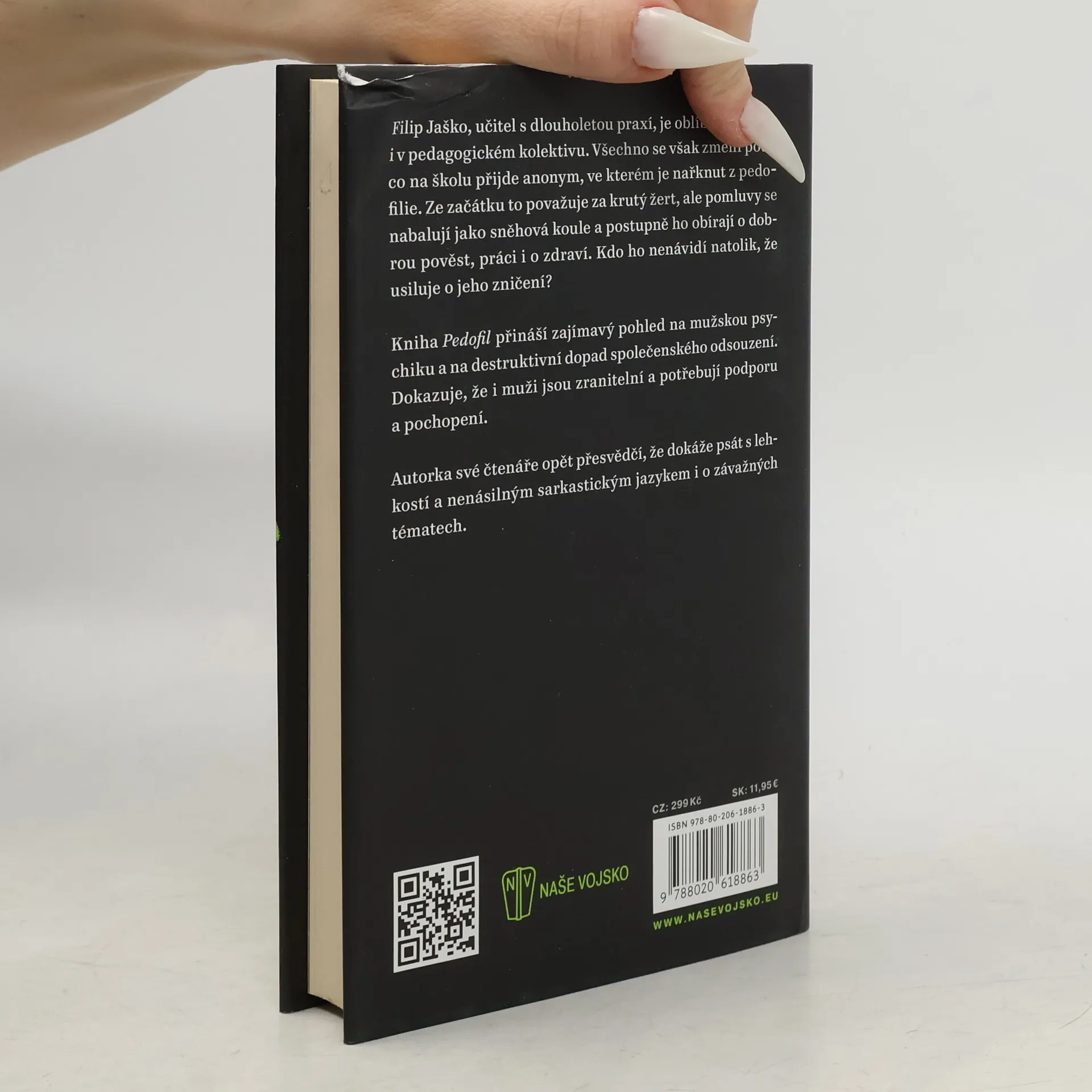 Filip Jaško, učitel s dlouholetou praxí, je u žáků i v kantorském kolektivu oblíbený. Všechno se ovšem změní poté, když na školu přijde anonym, ve kterém ho někdo obviňuje z pedofilie. Zpočátku to považuje jen za krutý žert, ale drby se nabalují jako sněhová koule a postupně ho obírají o pověst, práci i o zdraví. Kdo ho nenávidí natolik, že ho chce zničit? Kniha Pedofil přináší zajímavý pohled na mužskou psychiku, ale i na destruktivní dopad společenského odsouzení. Dokazuje, že i muži jsou zranitelní a potřebují podporu a pochopení.