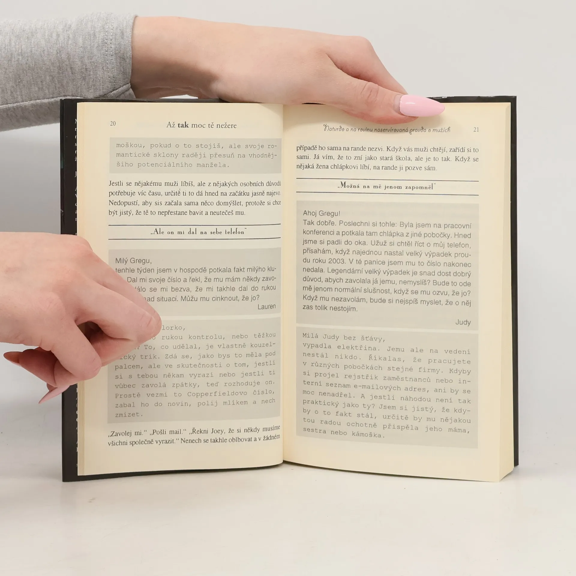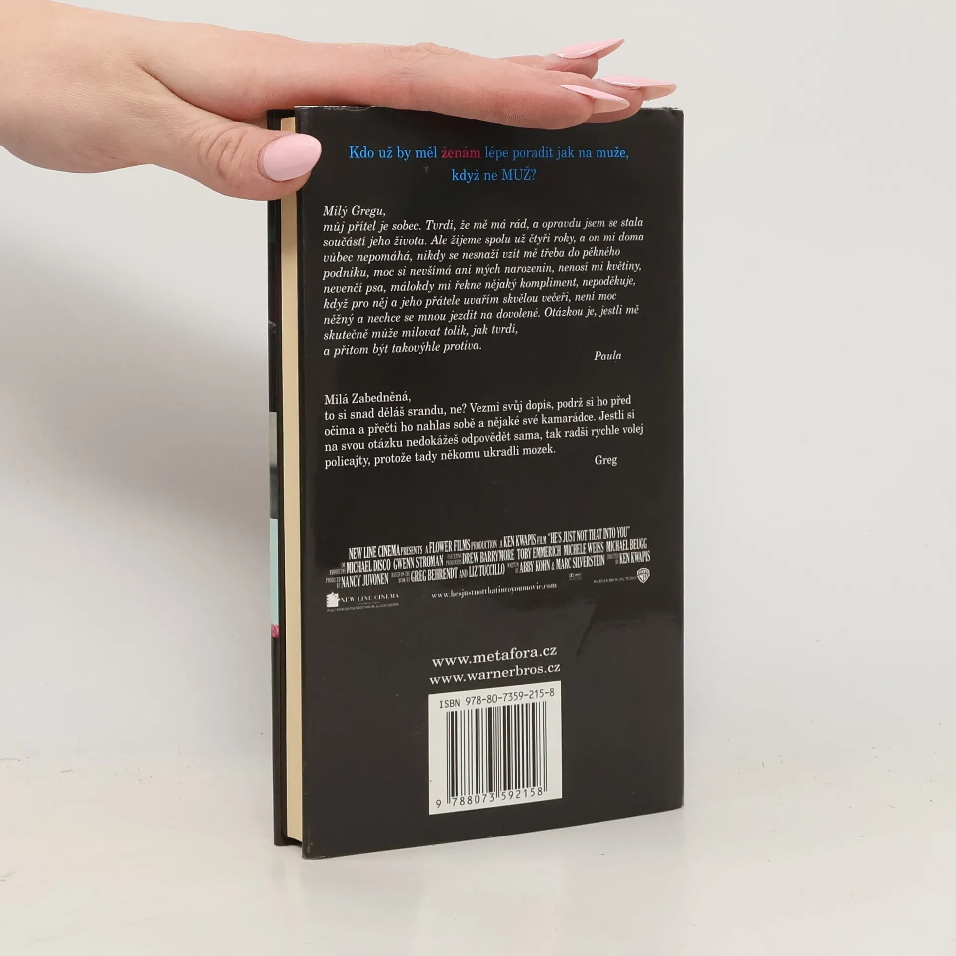 Autor i autorka téhle novátorské knížečky mají k sexu a milostným záležitostem opravdu blízko. Oba totiž spolupracují na mezinárodně oblíbeném televizním seriálu Sex ve městě. Greg je jeho konzultant a Liz scénáristka. A v čemže spočívá jejich převratný nápad? V názoru, že v problémech s láskou a s muži by dámám neměly radit kamarádky, ale zase jen a jenom muž, protože ten se přece v chlapské mysli vyzná ze všech nejlíp, že ano? Greg proto s otevřeností, mnohdy zábavnou, mnohdy šokující, odpovídá na dotazy poznání chtivých slečen a paní a uvádí na pravou míru nejčastější mužské výmluvy. Nevolá? Vykládá, že by se nerad vázal? Zalistujte a dozvíte se, co se za tím doopravdy skrývá. Že u toho občas padne nějaké to peprnější slůvko a že o legraci nebude nouze, netřeba snad ani podotýkat