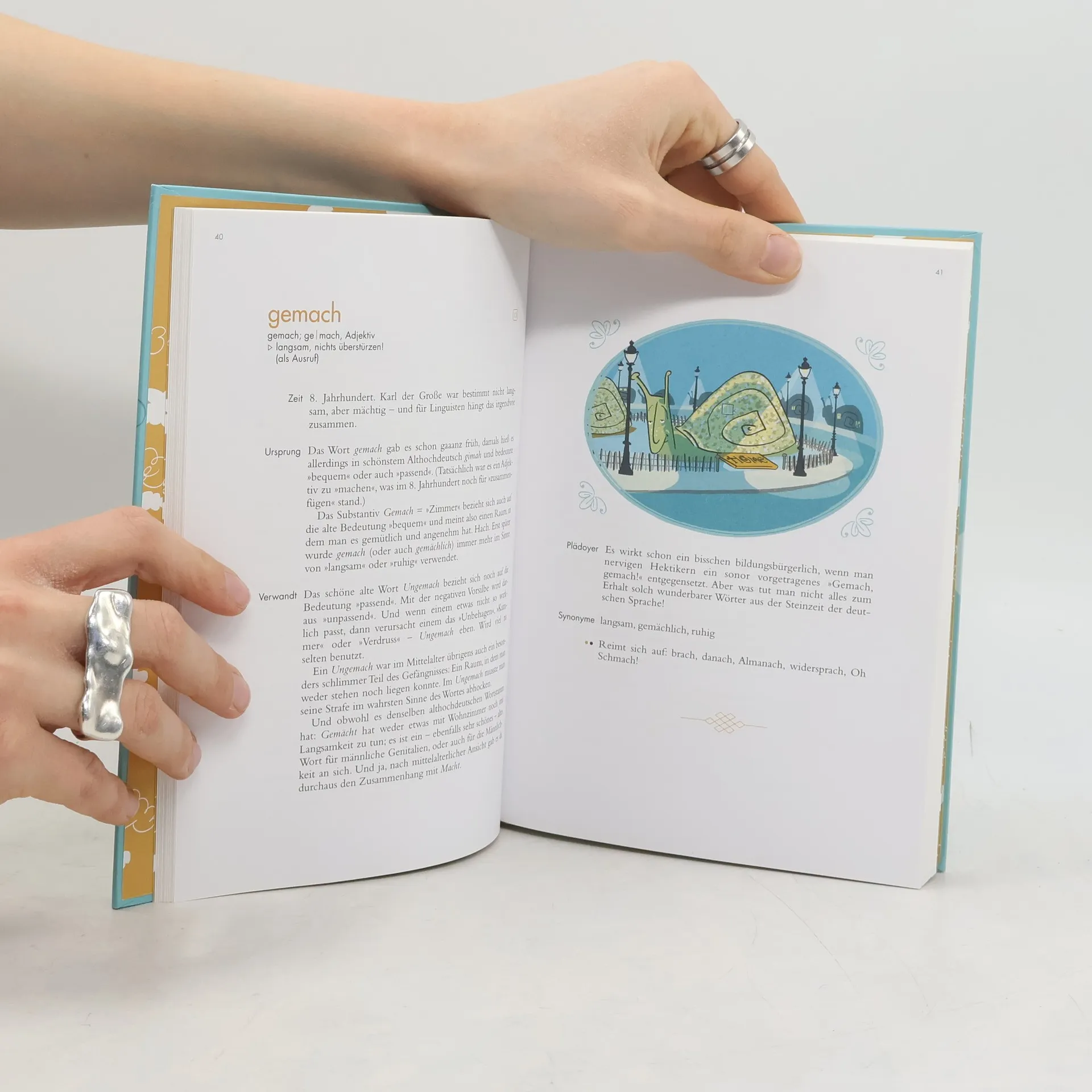 „Adamskostüm“, „Kokolores“, „Schabernack“ und „Stelldichein“: 100 Wörter, die zum Vergessen viel zu schön sind, stellt dieser liebevoll gestaltete Titel ins Rampenlicht. Zu jedem Wort gibt es spannende und unterhaltsame Fakten rund um Bedeutung und Ursprung sowie Fun Facts für Sprachliebhaber wie Synonyme, Reimwörter und Scrabble-Werte. Die liebevollen Illustrationen begleiten einzelne Wörter mit feinem Humor. Sprache wandelt sich im Laufe der Zeit und es kommen ständige neue Wörter hinzu ─ und das ist auch gut so! Ebenso verschwinden Wörter, weil die Sache oder der Sachverhalt, den sie bezeichnen, völlig unüblich geworden ist, wie die „Landpartie“. Andere Wörter spiegeln unsere heute veränderte Auffassung wider: Kein Mensch würde eine gebildete Frau heute als „Blaustrumpf“ bezeichnen. Und wieder andere Wörter sind deshalb verschwunden, weil neue, moderne Bezeichnungen aufgekommen sind: Zum „Backfisch“ sagt man heute Teenie. Alle diese Wörter haben aber gemein, dass sie es wert sind, gesammelt und vor dem Vergessen gerettet zu werden. Zudem laden sie zum Schmökern, Erinnern und Schmunzeln ein.