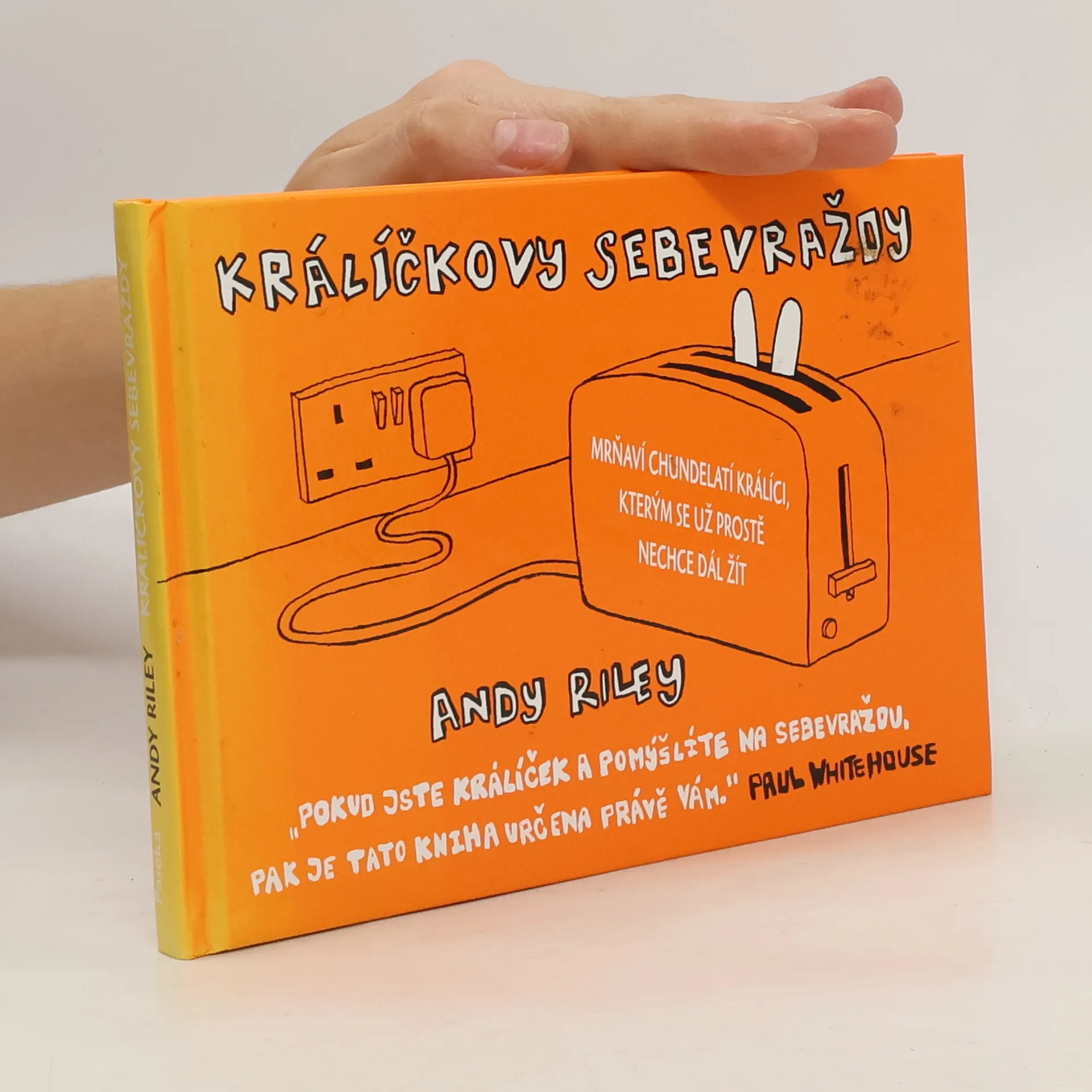 Bláznivá kniha králíčkových sebevražd komiksového kreslíře Andyho Rileyho je plná černého humoru na téma, jak to má malý bílý králíček udělat, aby sám sebe úspěšně sprovodil ze světa. Knížka není vhodná pro přecitlivělé čtenáře.