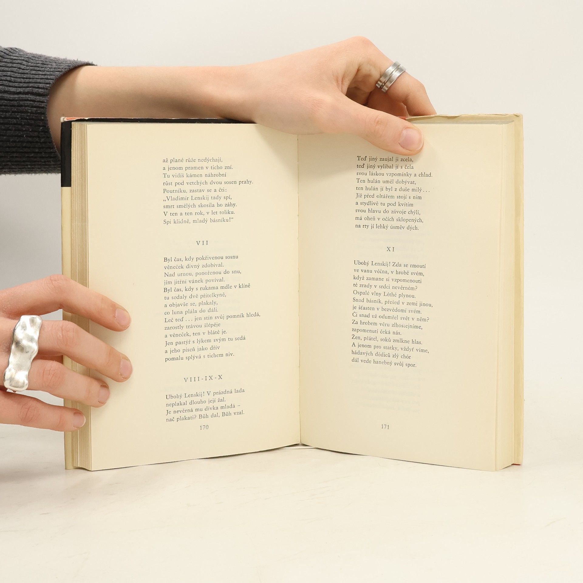 Puškin ve svém slavném veršovaném románu popisuje ruskou společnost 1. poloviny 19. století ve městě i na venkově. s lehkostí a ironickým nadhledem líčí všednodenní náplň znuděného petrohradského dandyho Oněgina a jeho nešťastný milostný příběh s naivní a snivou Táňou. Román se stal nesmrtelnou klasikou světové literatury.