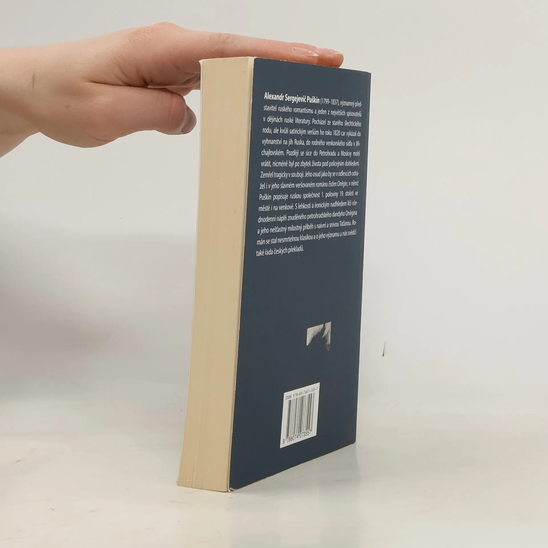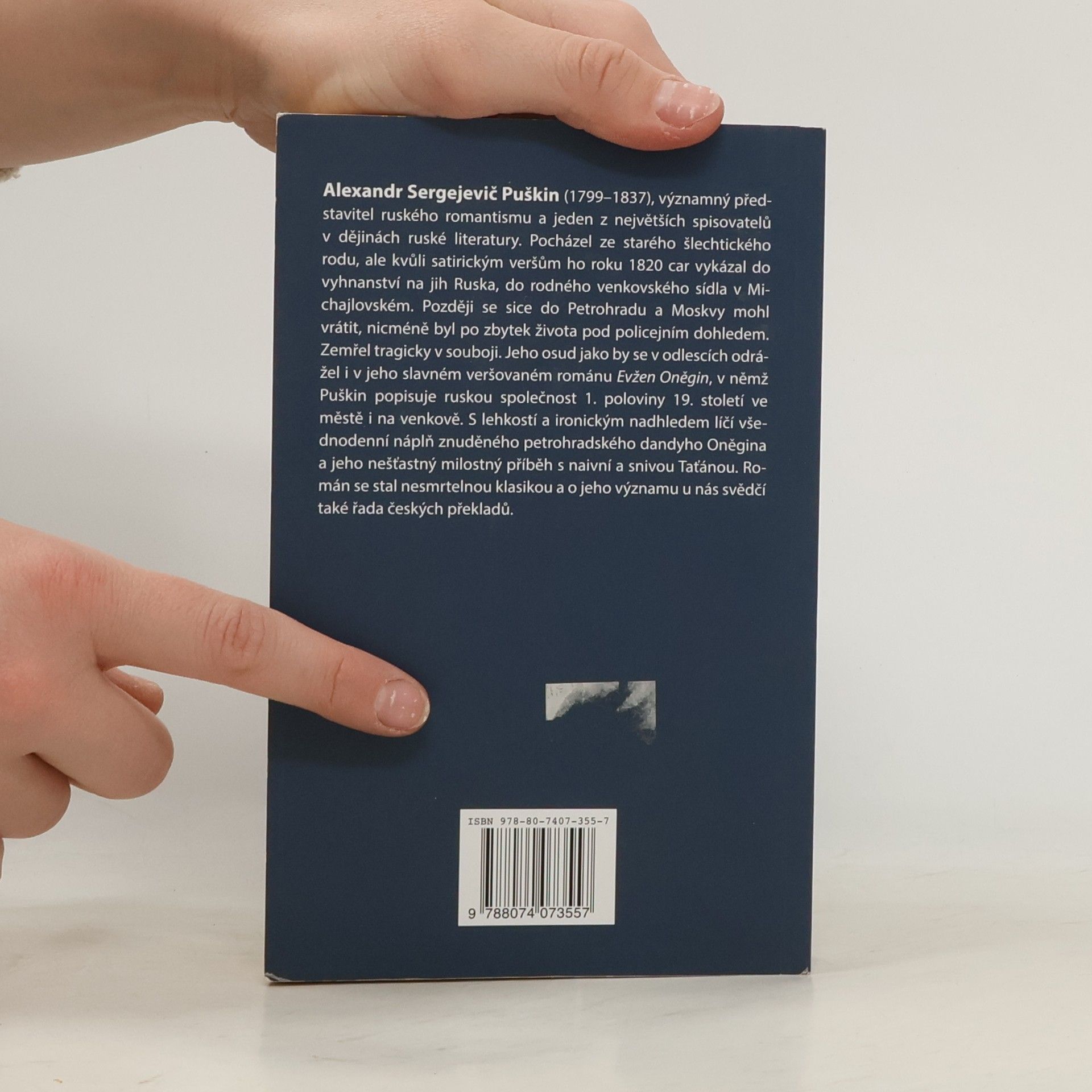 Puškin ve svém slavném veršovaném románu popisuje ruskou společnost 1. poloviny 19. století ve městě i na venkově. s lehkostí a ironickým nadhledem líčí všednodenní náplň znuděného petrohradského dandyho Oněgina a jeho nešťastný milostný příběh s naivní a snivou Táňou. Román se stal nesmrtelnou klasikou světové literatury.
