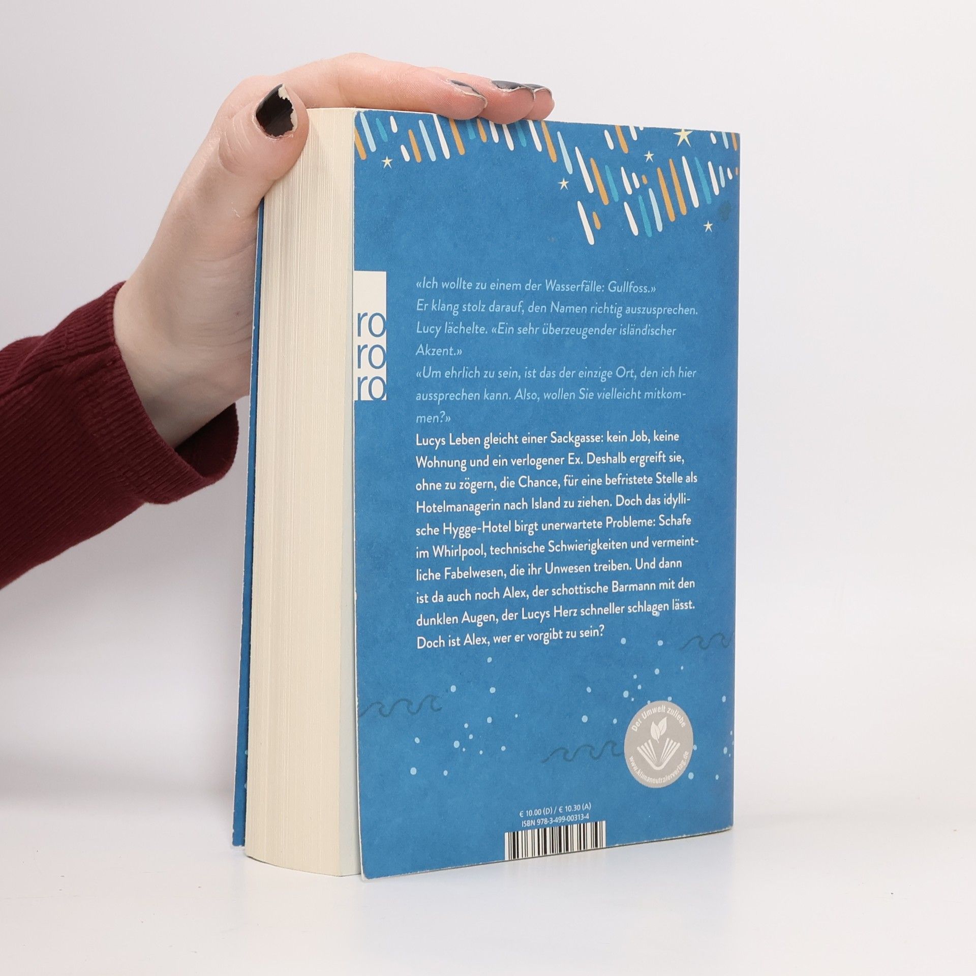 Lucys Leben gleicht einer Sackgasse: kein Job, keine Wohnung und ein verlogener Ex. Deshalb ergreift sie ohne zu zögern die Chance, für eine befristete Stelle als Hotelmanagerin nach Island zu ziehen. Doch das idyllische Hygge-Hotel birgt unerwartete Probleme: Schafe im Whirlpool, technische Schwierigkeiten und vermeintliche Fabelwesen, die ihr Unwesen treiben. Und dann ist da auch noch Alex, der schottische Barmann mit den dunklen Augen, der Lucys Herz schneller schlagen lässt. Doch ist Alex, wer er zu sein vorgibt?