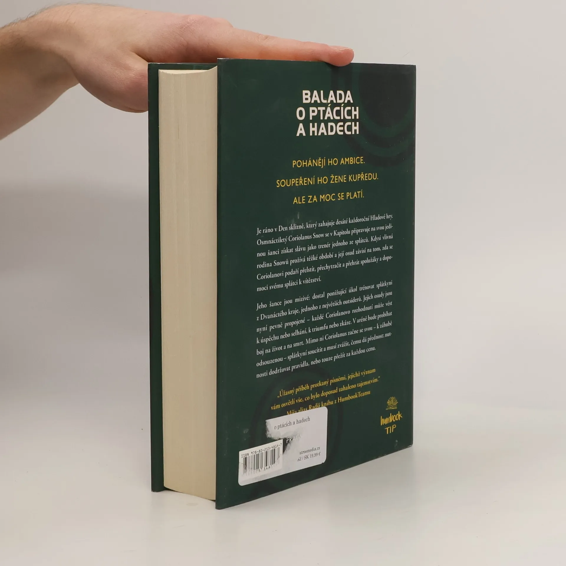 Túto knihu som pôvodne, keď vyšla, ani nechcela čítať, lebo veď koho zaujíma mladý Coriolanus. Potom však spravili film, a tak som si povedala, že to bude asi dobré. A to teda bolo. Tento príbeh je neuveriteľný. Suzanne Collins v ňom rozoberá podstatu ľudskej povahy, ako aj to, či sú "villians" rodení alebo stvorení. Túto myšlienku načrtla už v pôvodnej trilógii, no tu ju rozoberá do najmenších detailov. Nevedela som sa od knihy odtrhnúť, také nečakané dejové zvraty a fascinujúce myšlienky som už dávno v žiadnej nezažila. Suzanne nás varuje pred nami samými a pred budúcnosťou a je to veľkolepé. Päť hviezdičiek. Keby sa dalo dať desať, dám aj desať.