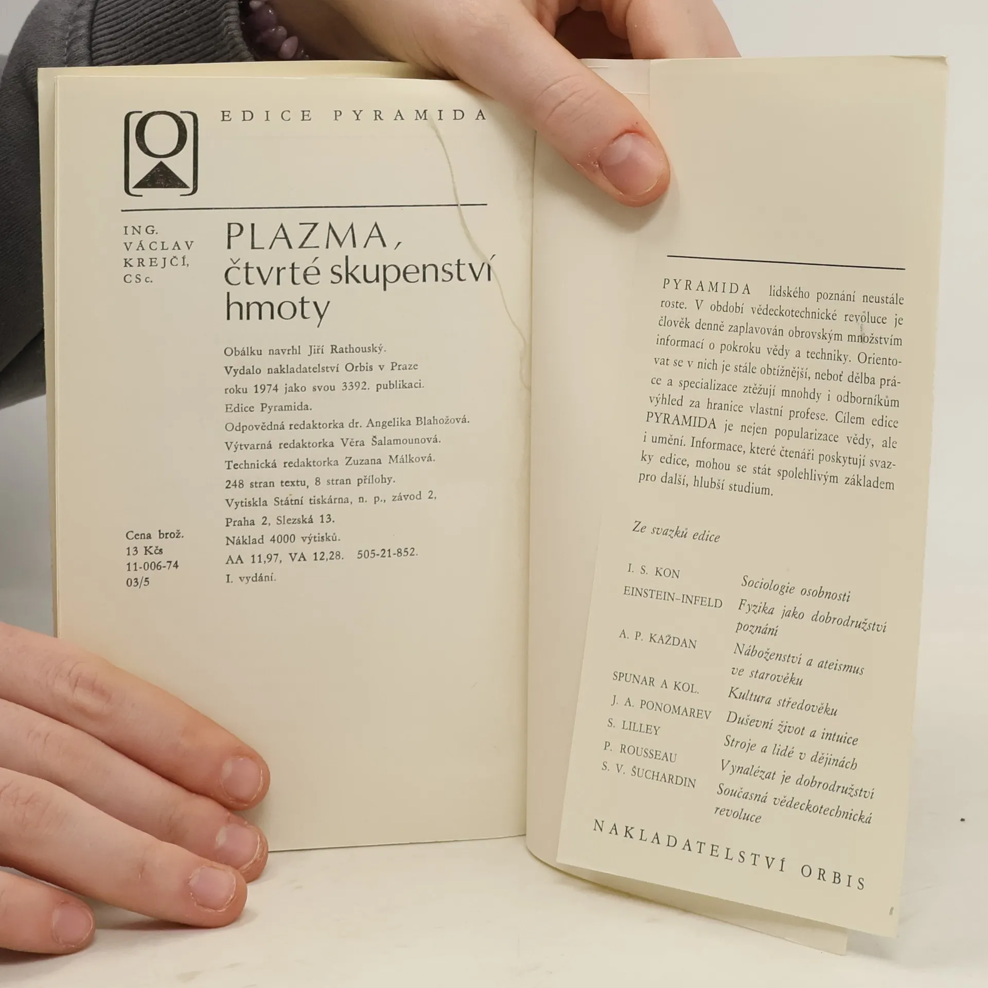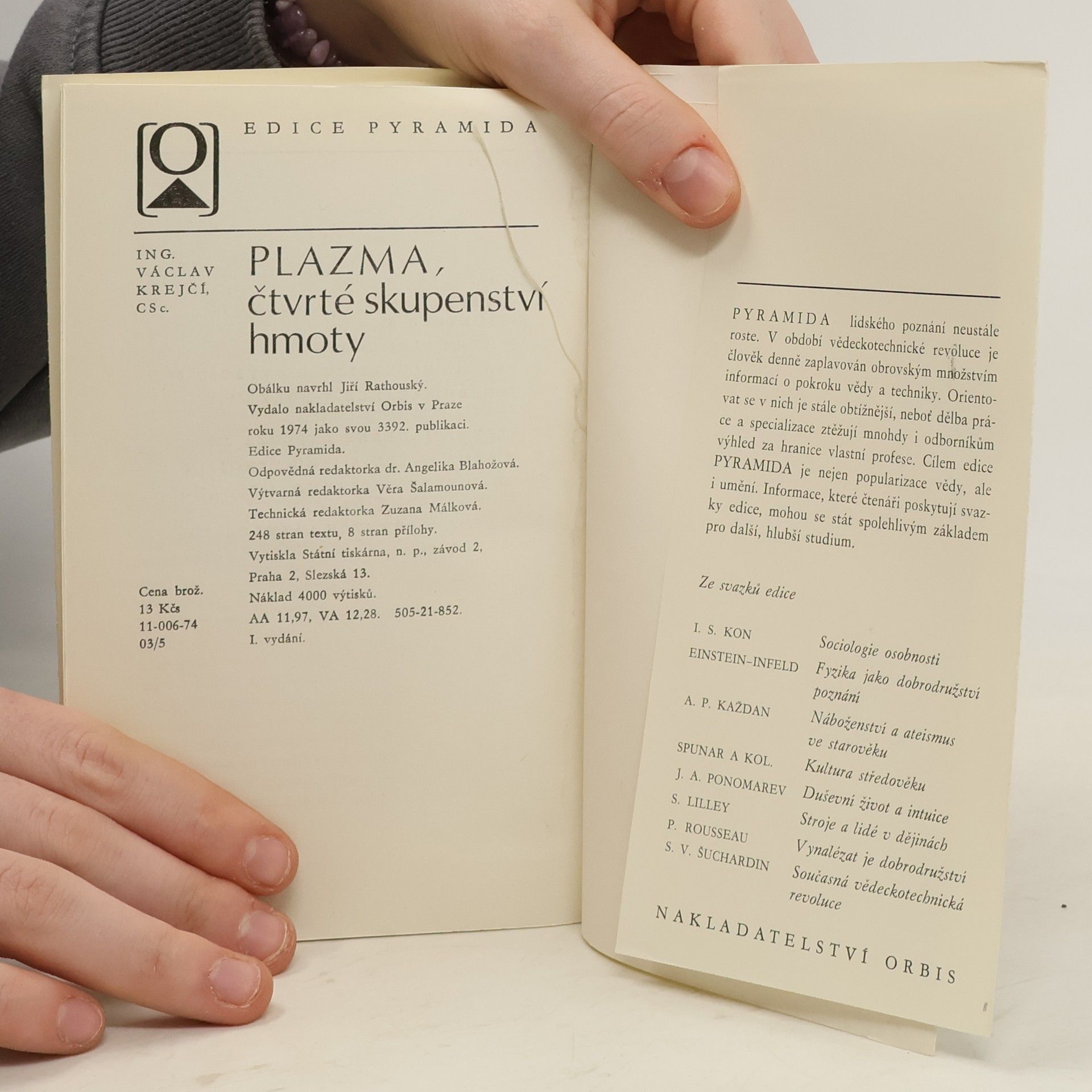 Výzkum vlastností plazmatu a jejich technického využití patří k moderním, velmi rychle se rozvíjejícím oborům fyziky. V populárně vědecké knížce autor seznamuje s konkrétními formami plazmatu, s podmínkami, které umožňují jeho existenci, a ukazuje fyzikální podstatu tohoto skupenství hmoty. Zabývá se problémy astrofyziky, laboratorního horkého plazmatu plamene, elektrických výbojů i plazmatu v kovech a dotýká se uplatnění plazmatu v praxi, např. při řízení termonukleární reakce aj.