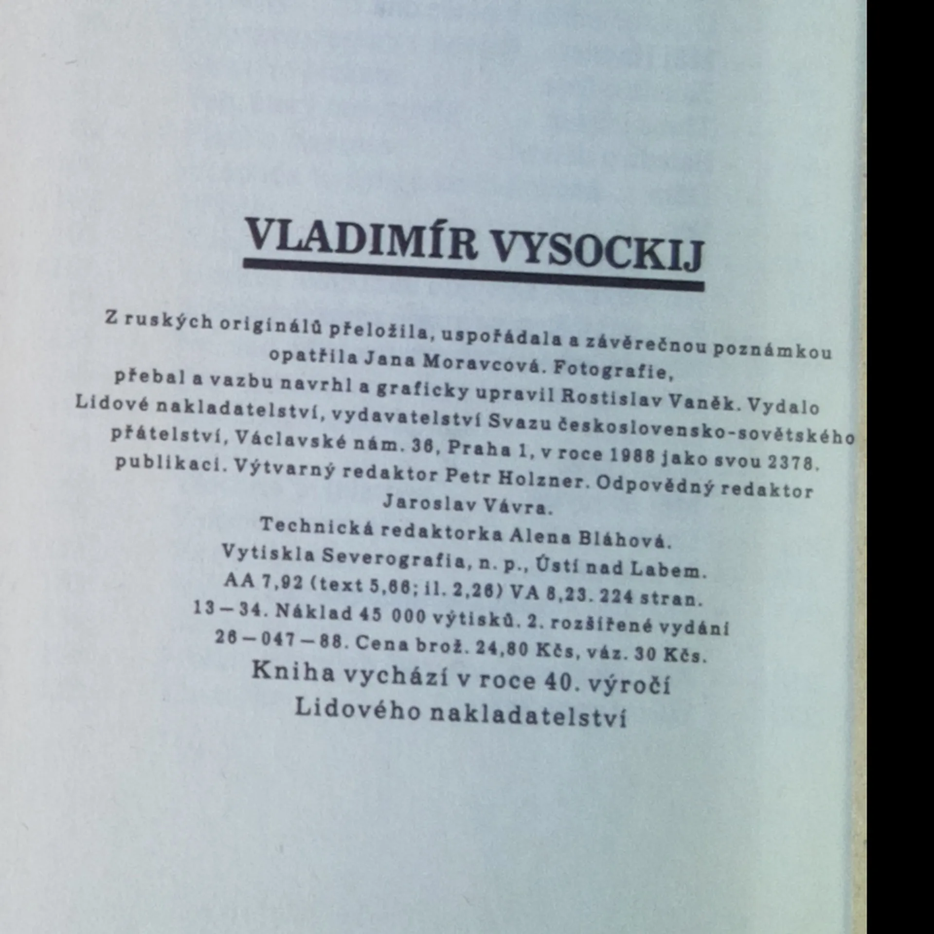 Vladimír Vysockij, Vladimir Semjonovič Vysockij, Moravcová Jana, Rostislav Vaněk