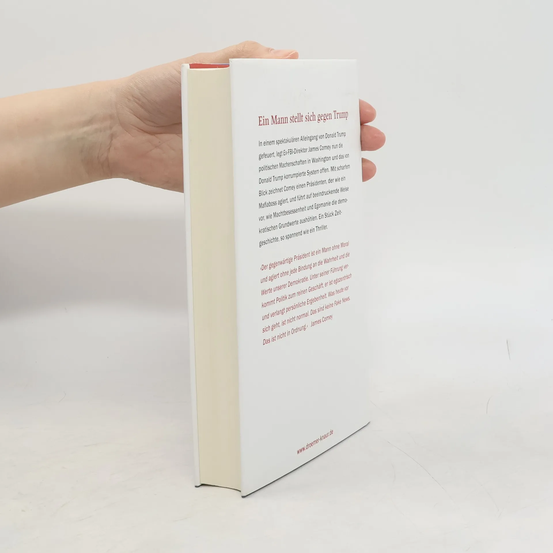 Die Erinnerungen von Ex-FBI-Chef James B. Comey sind aktuell, brisant und spannend wie ein Krimi. 2017 von Präsident Trump gefeuert, schreibt Comey einen fesselnden Insider-Bericht über politische Machenschaften und das von Donald Trump korrumpierte US-amerikanische System. Ein Sachbuch wie ein Kriminalroman der Extraklasse: James Comeys brisante Erinnerungen an die vergangenen 20 Jahre im Zentrum der Macht zeigen ihn als unbeugsamen Ermittler, der gegen die Mafia, gegen CIA-Folter und NSA-Überwachung, und zuletzt im Wahlkampf 2016 gegen Hillary Clintons Umgang mit dienstlichen Emails und Donald Trumps Russland-Verbindungen vorgegangen ist. Der Weg des parteilosen New Yorker Vorzeigejuristen gleicht einer politischen Achterbahnfahrt: stellvertretender Justizminister unter George W. Bush, zum FBI-Direktor ernannt von Barack Obama und gefeuert von Donald Trump wegen angeblicher Illoyalität. Sein Buch ist ein eindrückliches Lehrstück über den aufrechten Gang in einer verantwortungslosen Regierung.