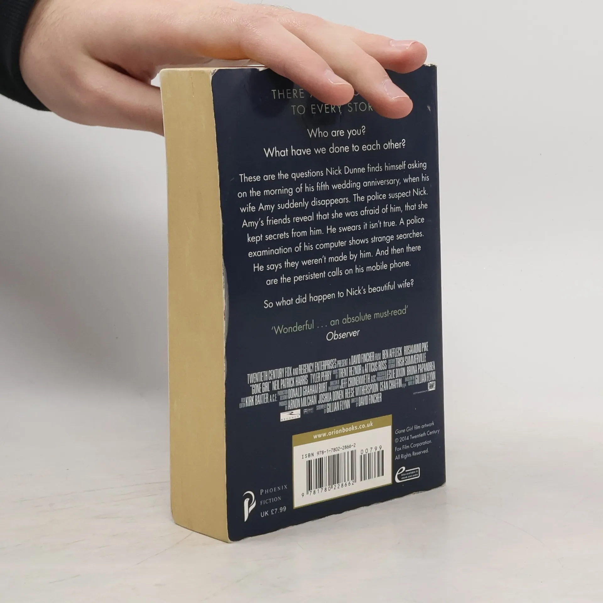 THE ADDICTIVE No.1 BESTSELLER THAT EVERYONE IS TALKING ABOUT Who are you? What have we done to each other? These are the questions Nick Dunne finds himself asking on the morning of his fifth wedding anniversary, when his wife Amy suddenly disappears. The police suspect Nick. Amy's friends reveal that she was afraid of him, that she kept secrets from him. He swears it isn't true. A police examination of his computer shows strange searches. He says they weren't made by him. And then there are the persistent calls on his mobile phone. So what really did happen to Nick's beautiful wife?