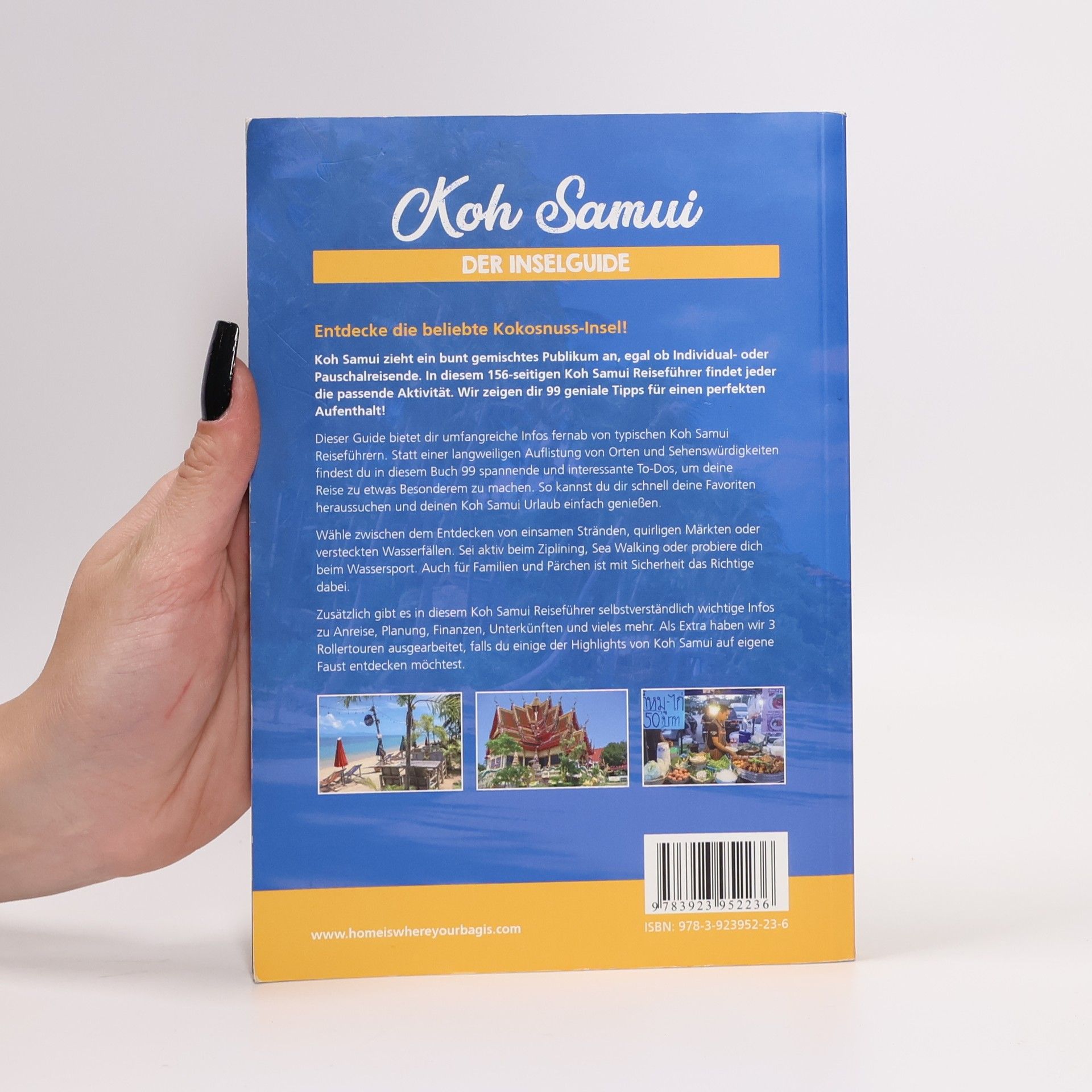 Dieser Guide bietet dir umfangreiche Infos fernab von typischen Koh Samui Reiseführern. Statt einer langweiligen Auflistung von Orten und Sehenswürdigkeiten findest du in diesem Buch 99 spannende und interessante To-Dos , um deine Reise zu etwas Besonderem zu machen. So kannst du dir schnell deine Favoriten heraussuchen und deinen Koh Samui Urlaub einfach genießen. Wähle zwischen dem Entdecken von einsamen Stränden, quirligen Märkten oder versteckten Wasserfällen. Sei aktiv beim Ziplining, Sea Walking oder probiere dich beim Wassersport. Auch für Familien und Pärchen ist mit Sicherheit das Richtige dabei. Zusätzlich gibt es in diesem Koh Samui Reiseführer selbstverständlich wichtige Infos zu Anreise, Planung, Finanzen, Unterkünften und vieles mehr. Als Extra haben wir 3 Rollertouren ausgearbeitet, falls du einige der Highlights von Koh Samui auf eigene Faust entdecken möchtest.
