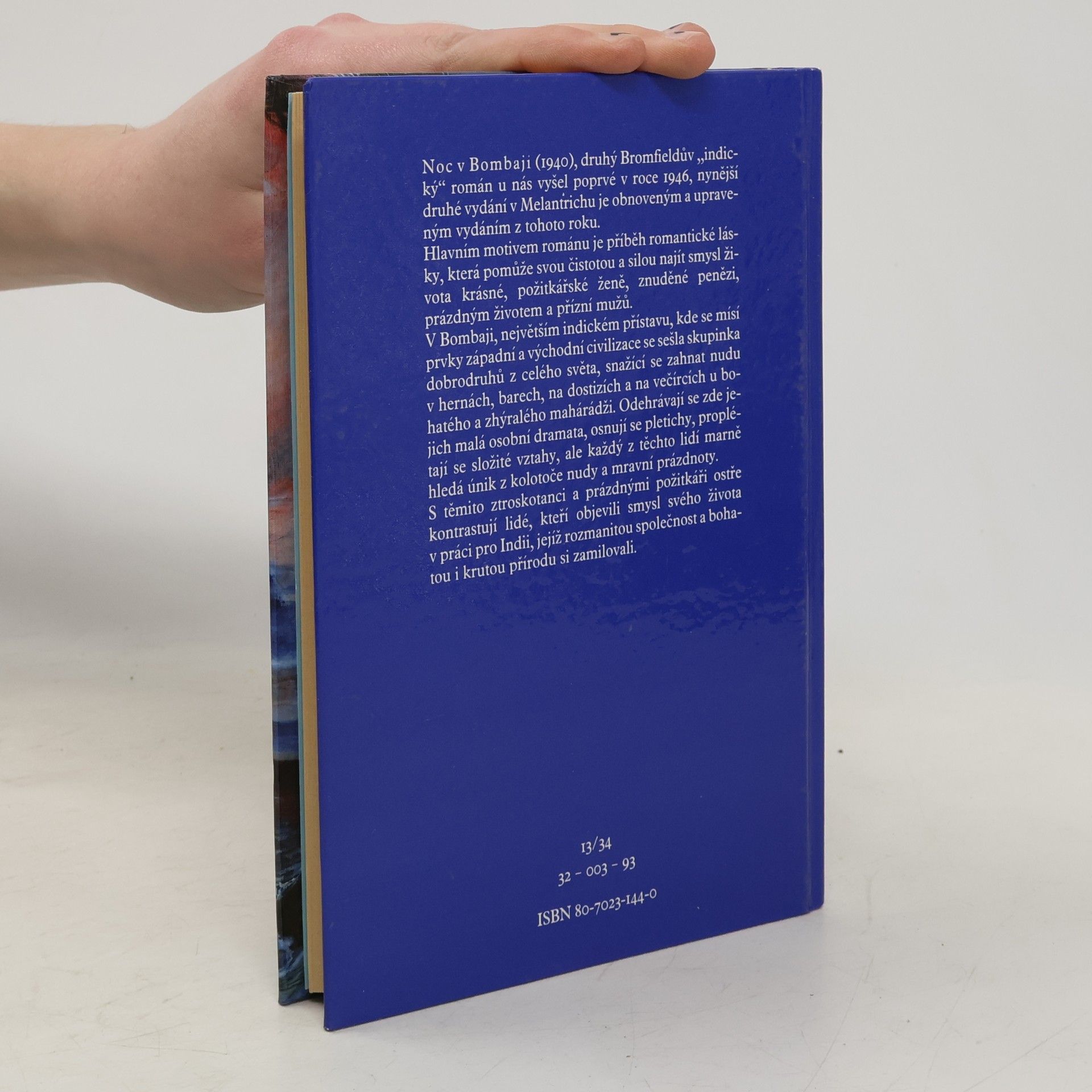 Noc v Bombaji (1940), druhý Bromfieldův "indický" román u nás vyšel poprvé v roce 1946, nynější druhé vydání v Melantrichu je obnoveným a upraveným vydáním z tohoto roku. Hlavním motivem románu je příběh romantické lásky, která pomůže svou čistotou a silou najít smysl života krásné, požitkářské ženě, znuděné penězi, prázdným životem a přízní mužů. V Bombaji, největším indickém přístavu, kde se mísí prvky západní a východní civilizace se sešla skupinka dobrodruhů z celého světa, snažící se zahnat nudu v hranách, barech, na dostizích a na večírcích u bohatého a zhýralého mahárádži. Odehrávají se zde jejich malá osobní dramata, osnují se pletichy, proplétají se složité vztahy, ale každý z těchto lidí hledá únik z kolotoče nudy a mravní prázdnoty. S těmito ztroskotanci a prázdnými požitkáři ostře kontrastují lidé, kteří objevili smysl svého života v práci pro Indii, jejíž rozmanitou společnost a bohatou i krutou přírodu si zamilovali.