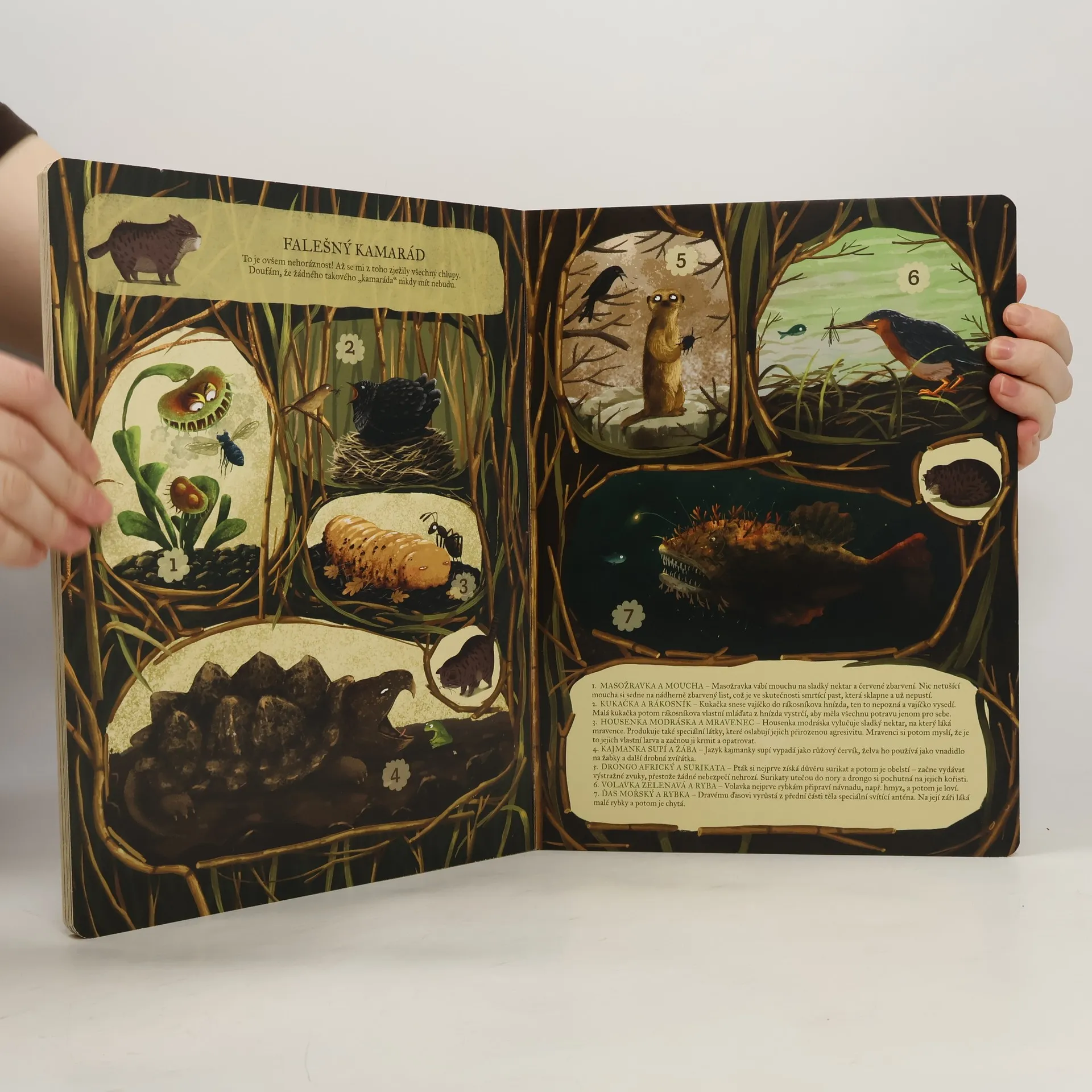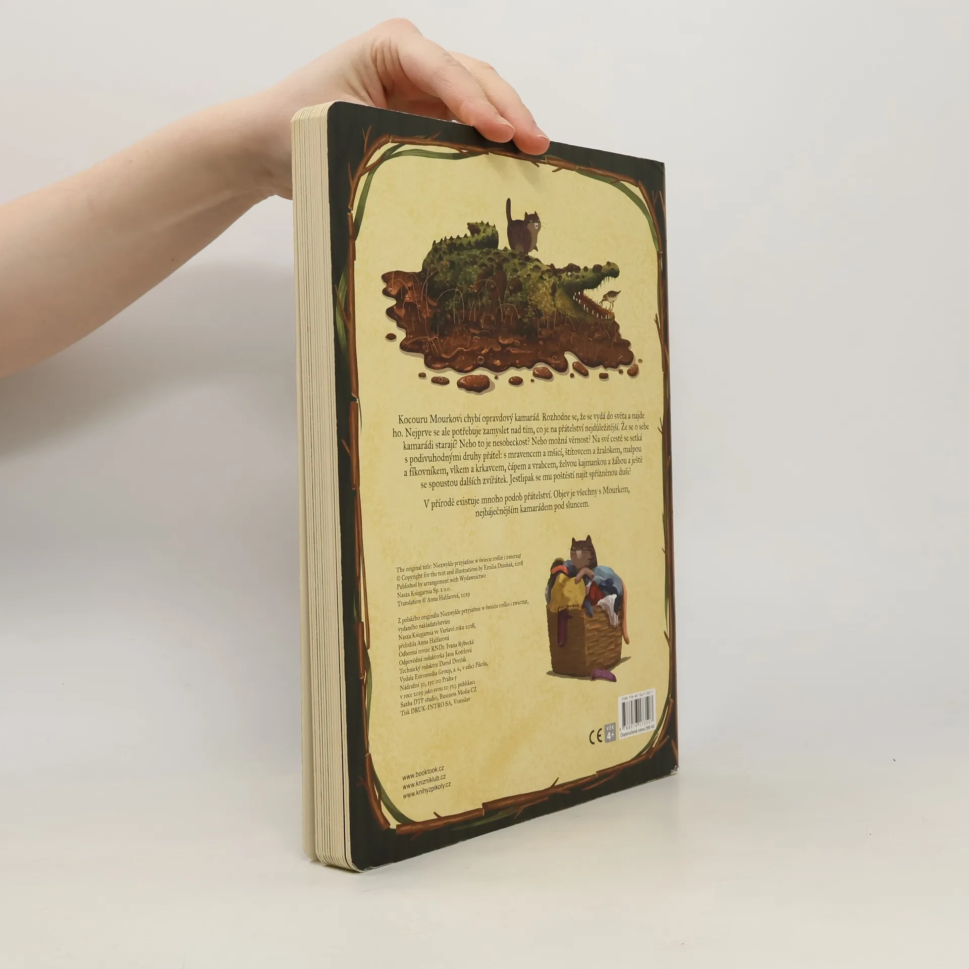 Kdo se ve světě přírody kamarádí? Kdo si pomáhá? Kdo komu připravuje snídani? Kdo koho s péčí ohryzává? Kocour Mourek provede nejmenší děti úžasným světem přírody, ve kterém vznikají neobyčejná a vzácná přátelství mezi zvířátky a rostlinkami, rostlinkami a houbami a houbami a zvířátky. Děti se s kocouřím kamarádem vydají po stopách přátelství, která jsou mnohdy překvapující, a zábavnou formou se dozvědí spoustu zajímavostí. Krásné velkoformátové leporelo s láskou nakreslila oblíbená ilustrátorka Emilia Dziubaková. Leporelo je určeno dětem od 4 let.