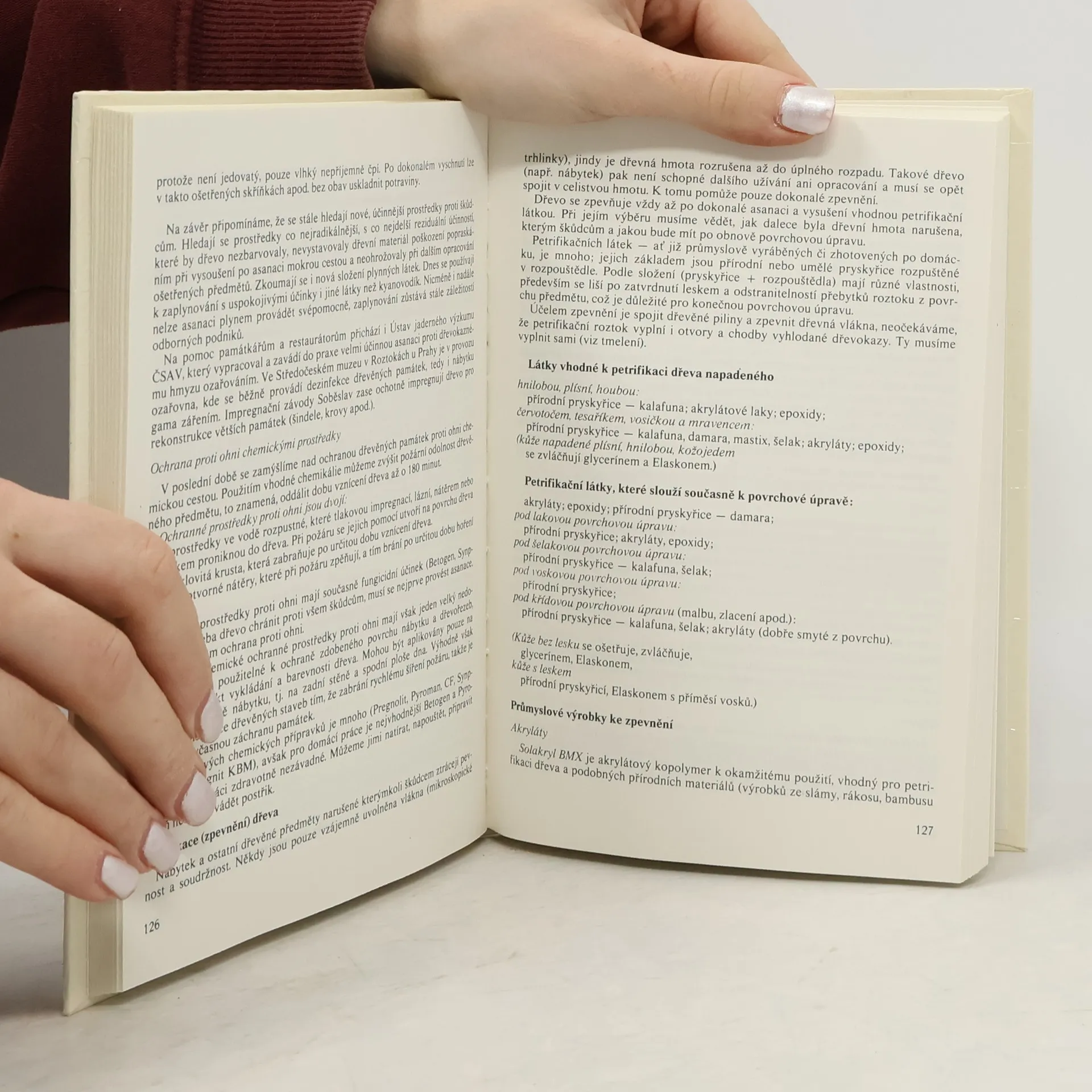 Kniha seznamuje s údržbou a opravami starožitného nábytku. Úvodní část je věnována stručnému popisu jednotlivých slohů, od starověku až do nové doby. Těžištěm knihy jsou praktické návody na opravy a údržbu. Jsou zde popsány téměř všechny techniky z hlediska povrchových úprav, oprav a renovací a uveden potřebné materiály a nářadí. Výklad je provázen bohatým obrazovým materiálem.
