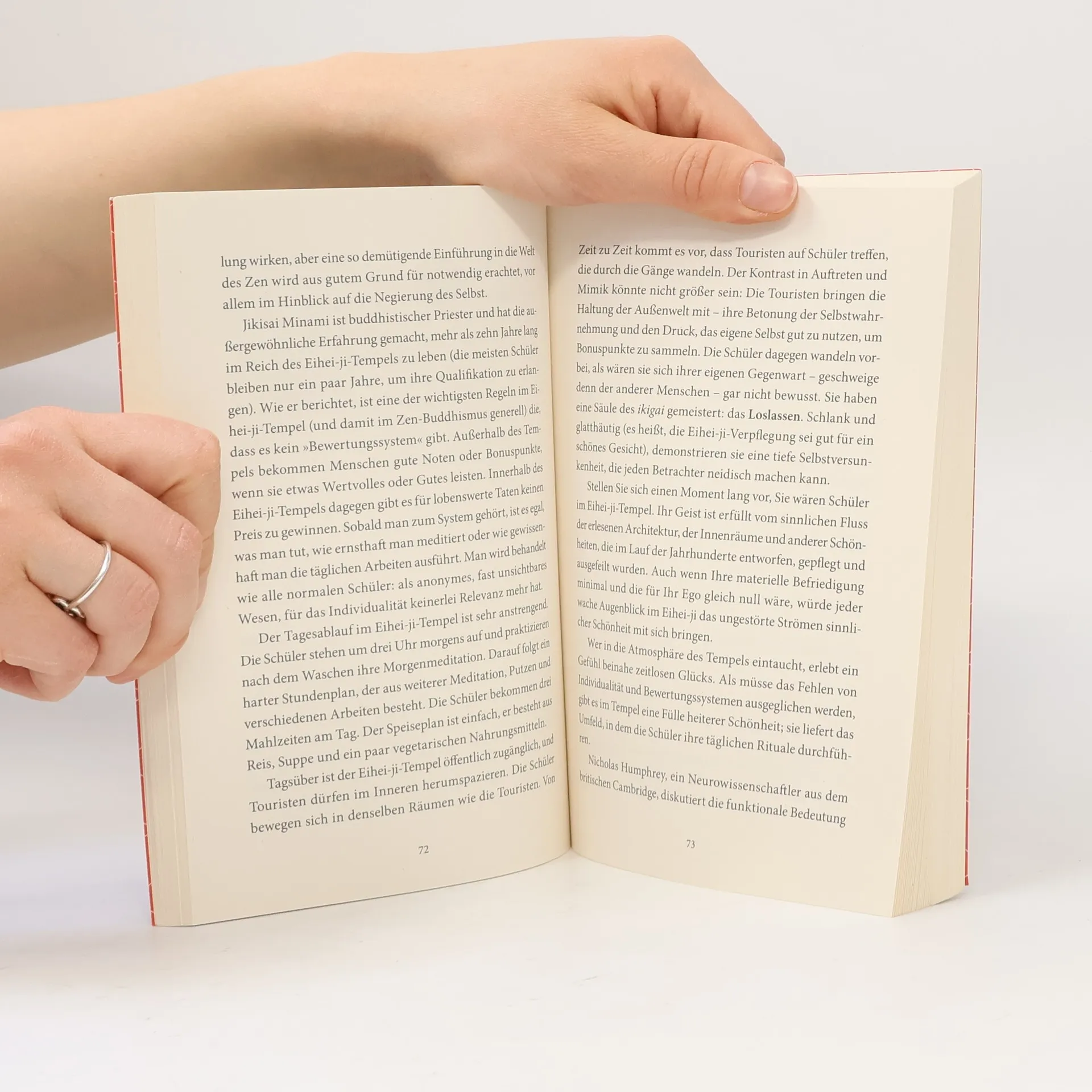 ikigai ist »das, wofür es sich zu leben lohnt« Ob die Obstbauern von Sembikiya, der Keramiker Sokichi Nagae oder der 92-jährige Jiro Ono, der älteste mit drei Michelin-Sternen ausgezeichnete Koch: Sie alle haben ihr ikigai gefunden und damit Sinn und Freude im Leben. Anhand dieser und anderer inspirierender Lebensgeschichten und fundiert durch wissenscha liche Erkenntnisse erklärt der japanische Neurowissenschaftler Ken Mogi die japanische Philosophie, die hilft, Erfüllung, Zufriedenheit und Achtsamkeit im Leben zu finden. Er gewährt zudem tiefe Einblicke in die japanische Kultur, in der das Verständnis von ikigai allgegenwärtig ist. Japaner trachten danach, ihr ikigai zu finden und zu leben – egal, ob in der Karriere, in den Beziehungen zu Freunden und der Familie oder in ihren akribisch gepflegten Hobbys. Dabei ist entscheidend, dass man sein Ziel mit Hingabe verfolgt und das, was man tut, um seiner selbst willen tut. Die Fünf Säulen des ikigai: 1. Klein anfangen 2. Loslassen lernen 3. Harmonie und Nachhaltigkeit leben 4. Die Freude an kleinen Dingen entdecken 5. Im Hier und Jetzt sein