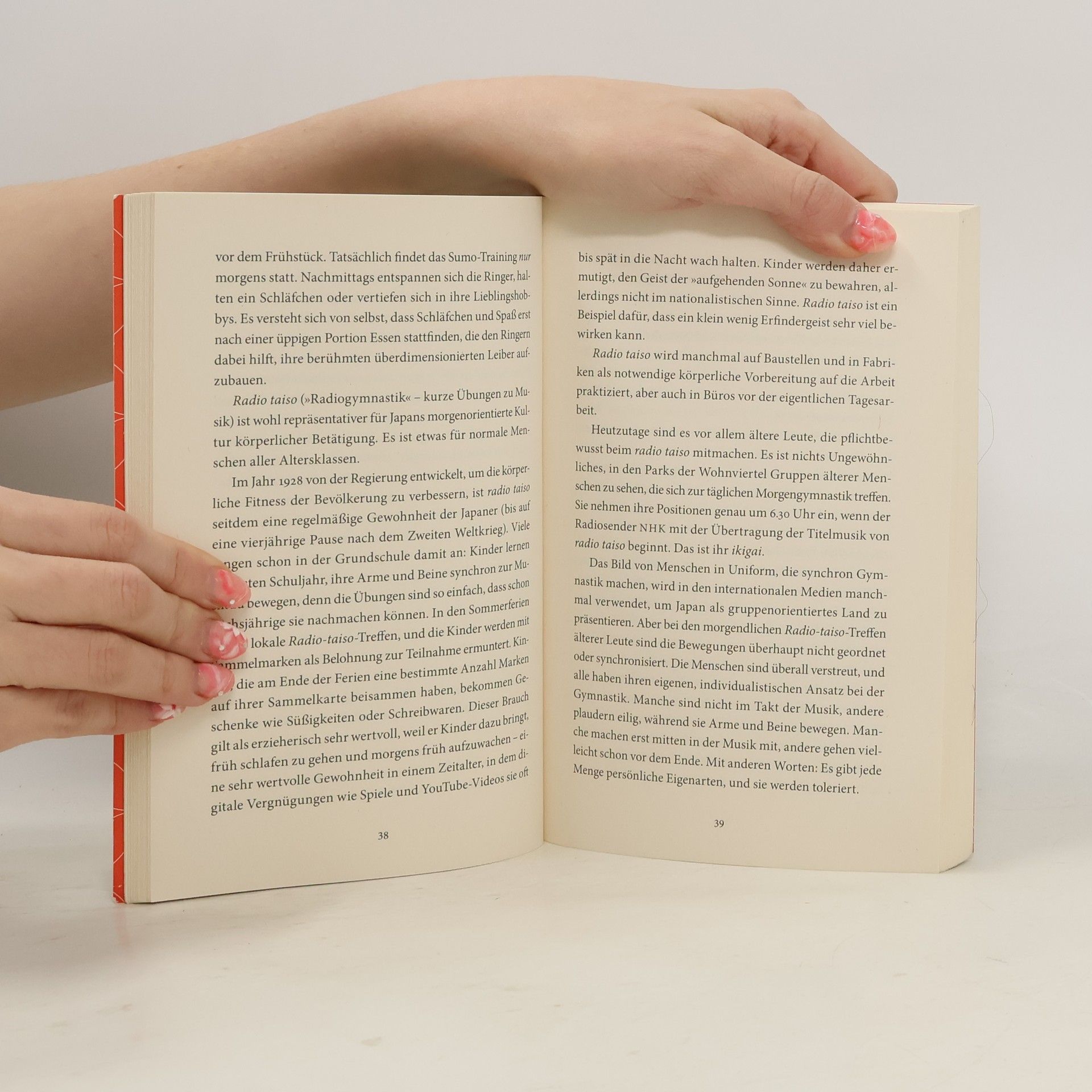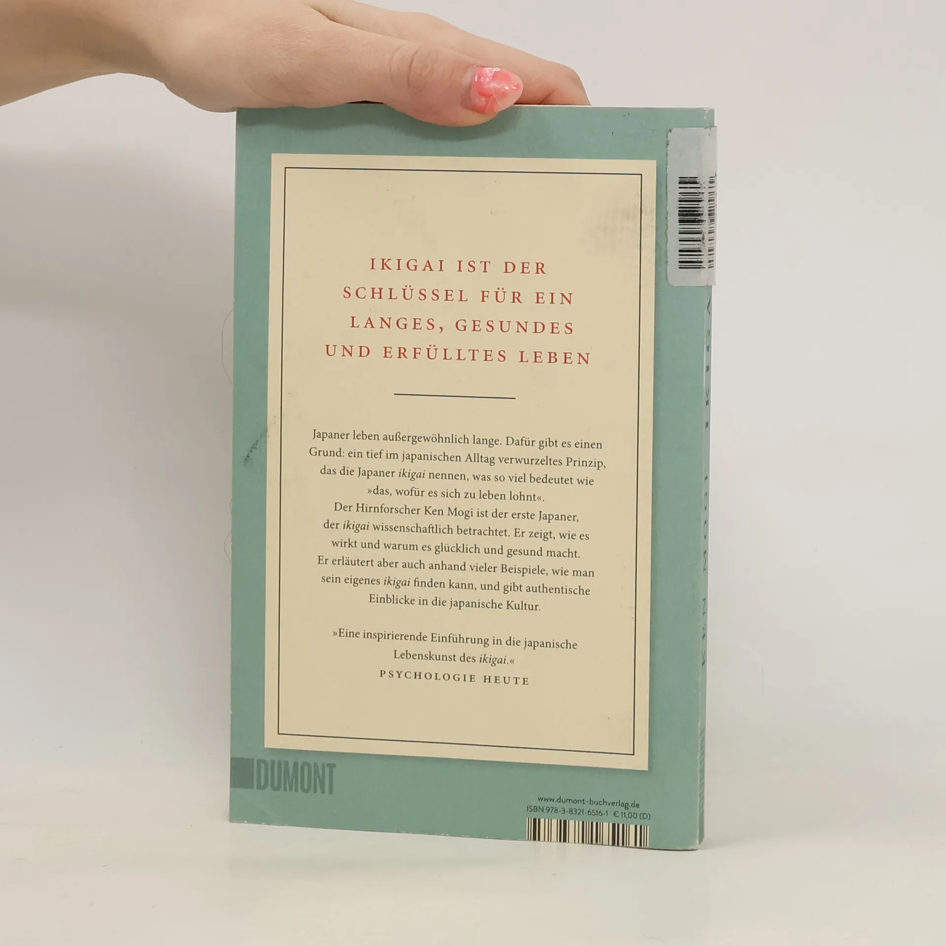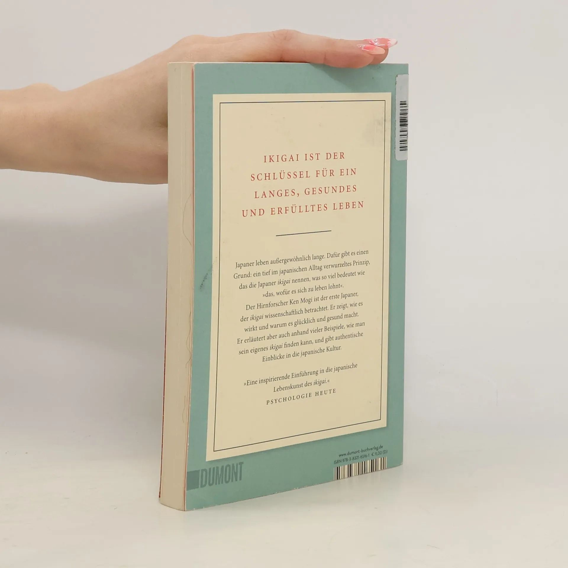 ikigai ist »das, wofür es sich zu leben lohnt« Ob die Obstbauern von Sembikiya, der Keramiker Sokichi Nagae oder der 92-jährige Jiro Ono, der älteste mit drei Michelin-Sternen ausgezeichnete Koch: Sie alle haben ihr ikigai gefunden und damit Sinn und Freude im Leben. Anhand dieser und anderer inspirierender Lebensgeschichten und fundiert durch wissenscha liche Erkenntnisse erklärt der japanische Neurowissenschaftler Ken Mogi die japanische Philosophie, die hilft, Erfüllung, Zufriedenheit und Achtsamkeit im Leben zu finden. Er gewährt zudem tiefe Einblicke in die japanische Kultur, in der das Verständnis von ikigai allgegenwärtig ist. Japaner trachten danach, ihr ikigai zu finden und zu leben – egal, ob in der Karriere, in den Beziehungen zu Freunden und der Familie oder in ihren akribisch gepflegten Hobbys. Dabei ist entscheidend, dass man sein Ziel mit Hingabe verfolgt und das, was man tut, um seiner selbst willen tut. Die Fünf Säulen des ikigai: 1. Klein anfangen 2. Loslassen lernen 3. Harmonie und Nachhaltigkeit leben 4. Die Freude an kleinen Dingen entdecken 5. Im Hier und Jetzt sein
