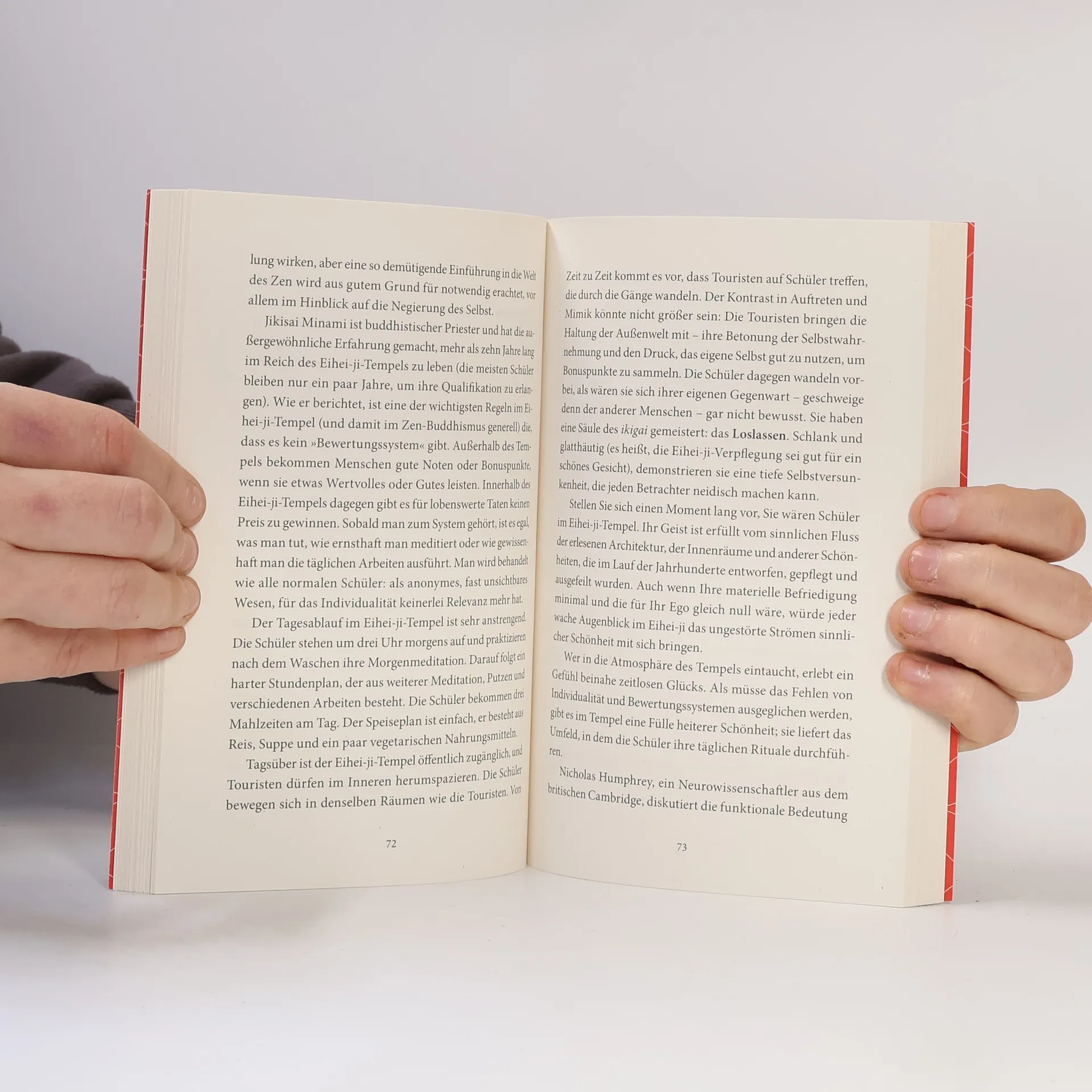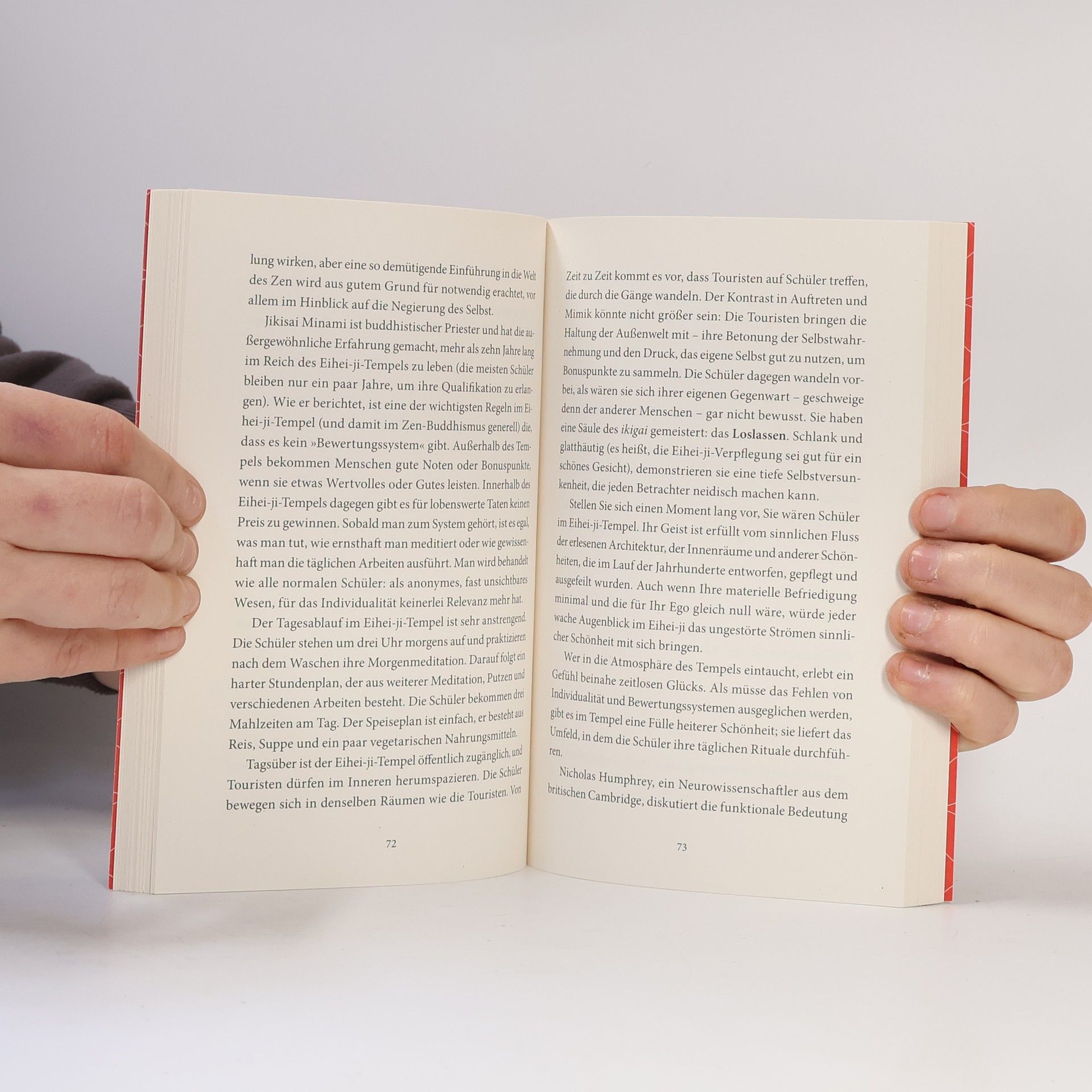 ikigai ist »das, wofür es sich zu leben lohnt« Ob die Obstbauern von Sembikiya, der Keramiker Sokichi Nagae oder der 92-jährige Jiro Ono, der älteste mit drei Michelin-Sternen ausgezeichnete Koch: Sie alle haben ihr ikigai gefunden und damit Sinn und Freude im Leben. Anhand dieser und anderer inspirierender Lebensgeschichten und fundiert durch wissenscha liche Erkenntnisse erklärt der japanische Neurowissenschaftler Ken Mogi die japanische Philosophie, die hilft, Erfüllung, Zufriedenheit und Achtsamkeit im Leben zu finden. Er gewährt zudem tiefe Einblicke in die japanische Kultur, in der das Verständnis von ikigai allgegenwärtig ist. Japaner trachten danach, ihr ikigai zu finden und zu leben – egal, ob in der Karriere, in den Beziehungen zu Freunden und der Familie oder in ihren akribisch gepflegten Hobbys. Dabei ist entscheidend, dass man sein Ziel mit Hingabe verfolgt und das, was man tut, um seiner selbst willen tut. Die Fünf Säulen des ikigai: 1. Klein anfangen 2. Loslassen lernen 3. Harmonie und Nachhaltigkeit leben 4. Die Freude an kleinen Dingen entdecken 5. Im Hier und Jetzt sein