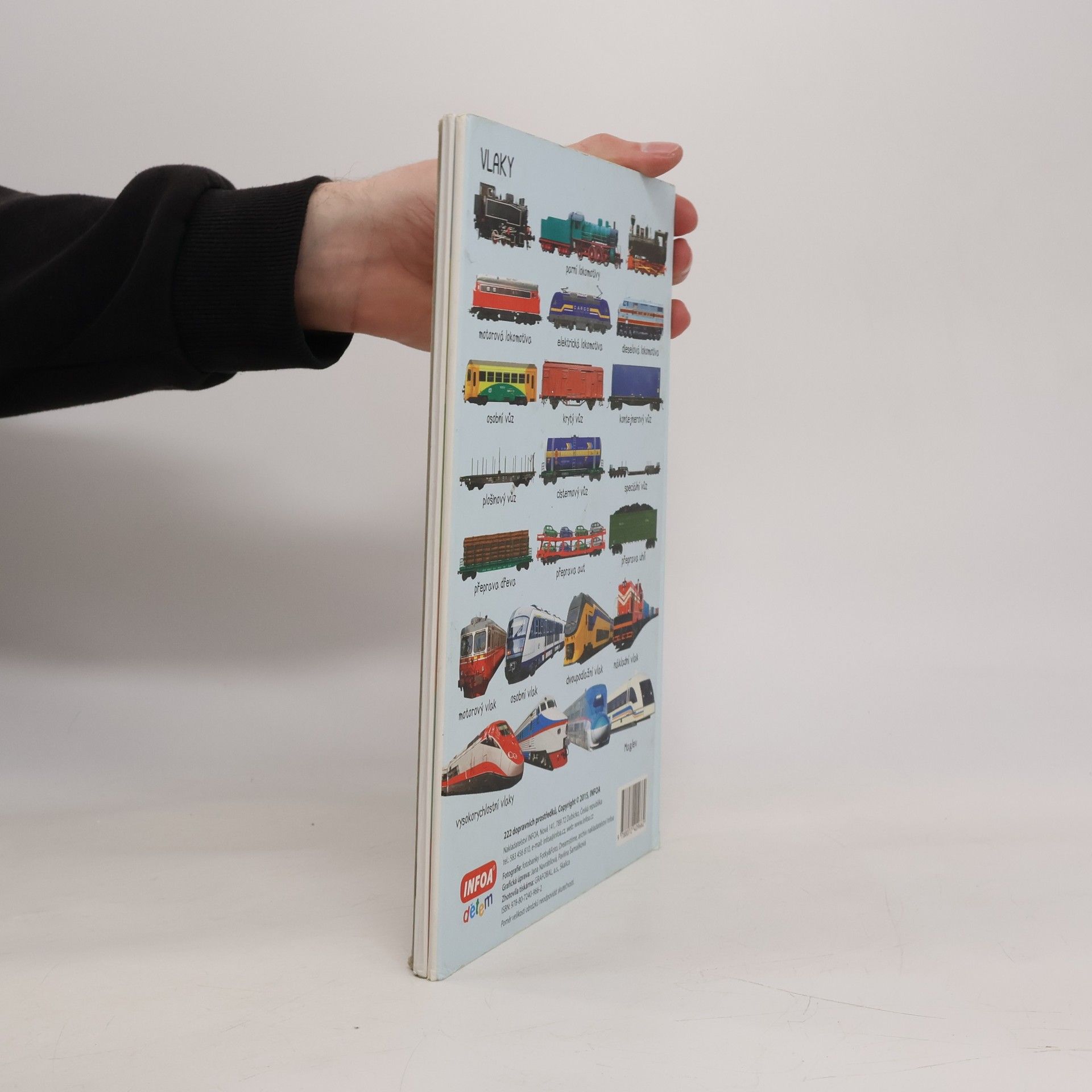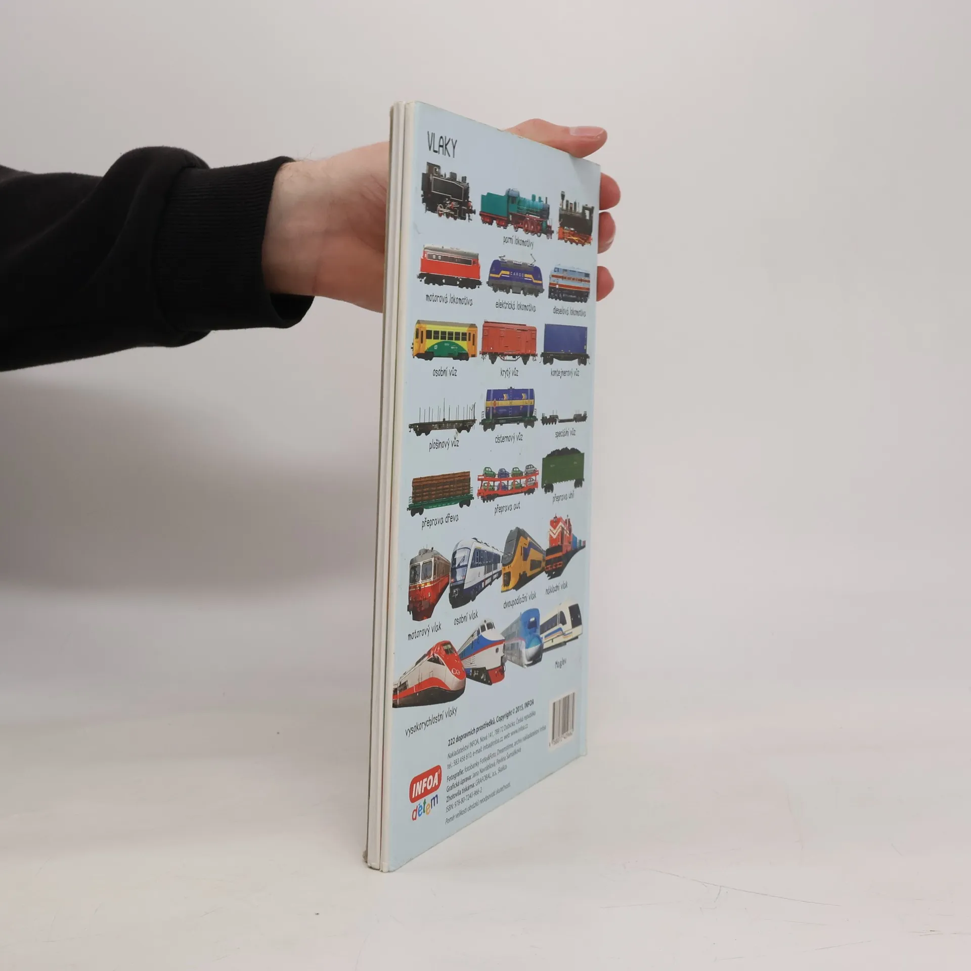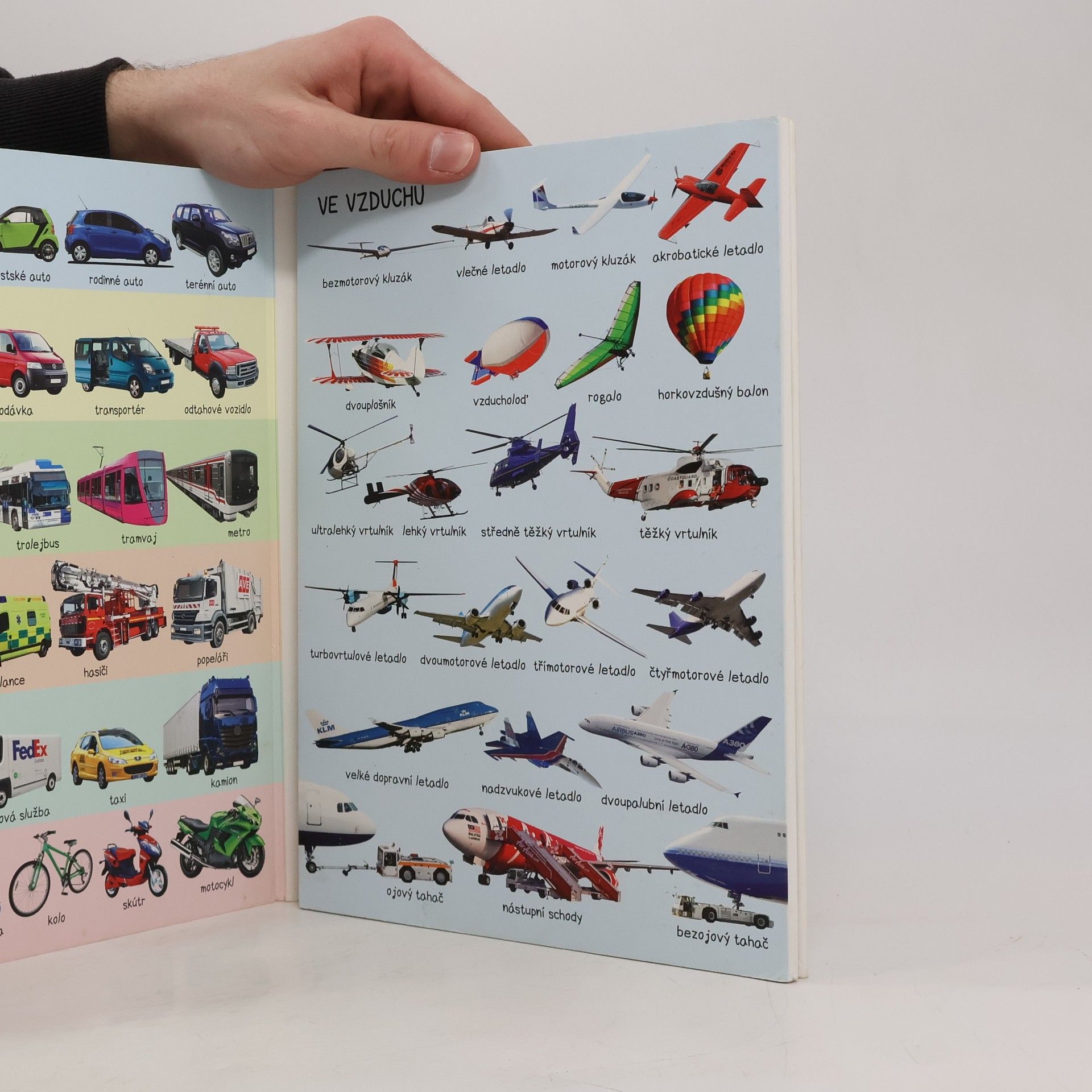 Barevné rozkládací leporelo pro děti s mnoha barevnými fotografiemi. Obsahuje 222 obrázků dopravních prostředků, které jsou tematicky seřazeny.