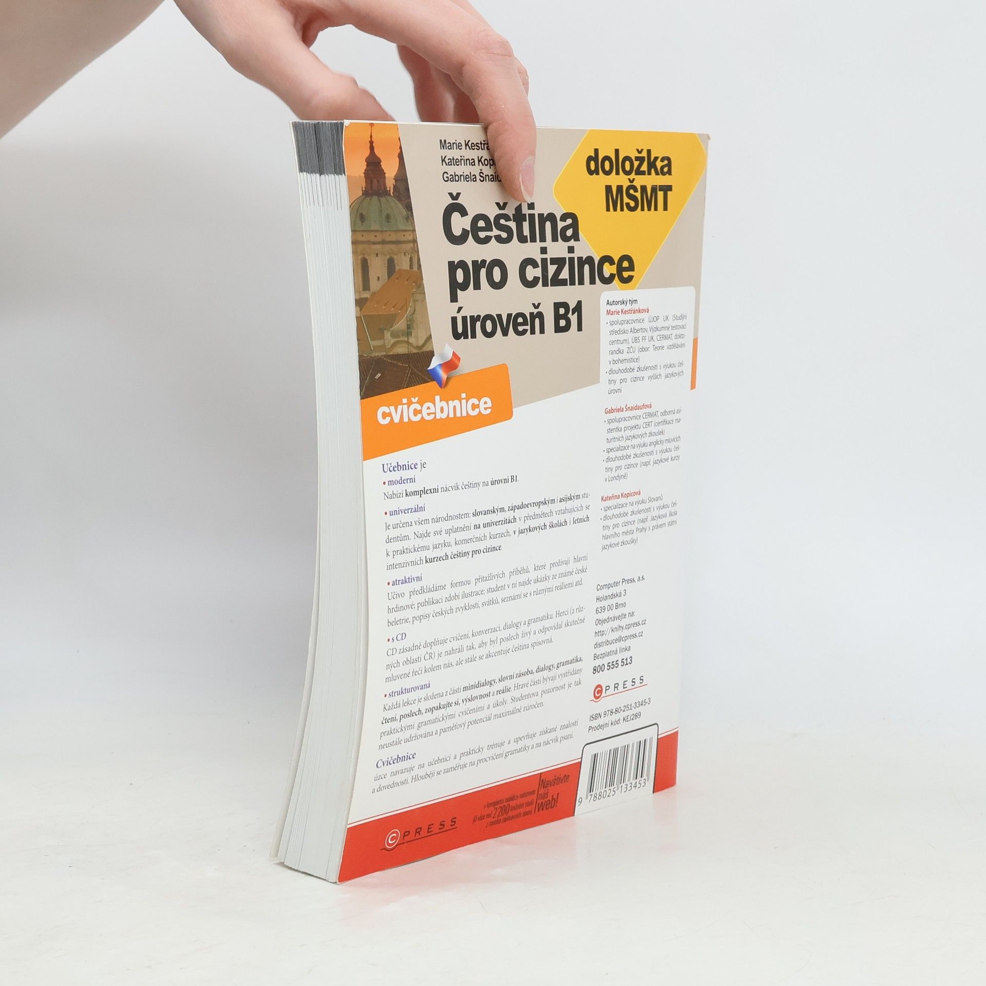 "Učebnice je jedinečná tím, že obsahuje komplexní látku pro nácvik češtiny na prahové úrovni B1. Je vhodná pro všechny národnosti: slovanské, západoevropské a asijské studenty, pro univerzity i letní školy. Každá lekce je složena z částí mini dialogy, slovní zásoba, dialogy, gramatika, čtení, poslech, zopakujte si, výslovnost, reálie."--Vydavatel.