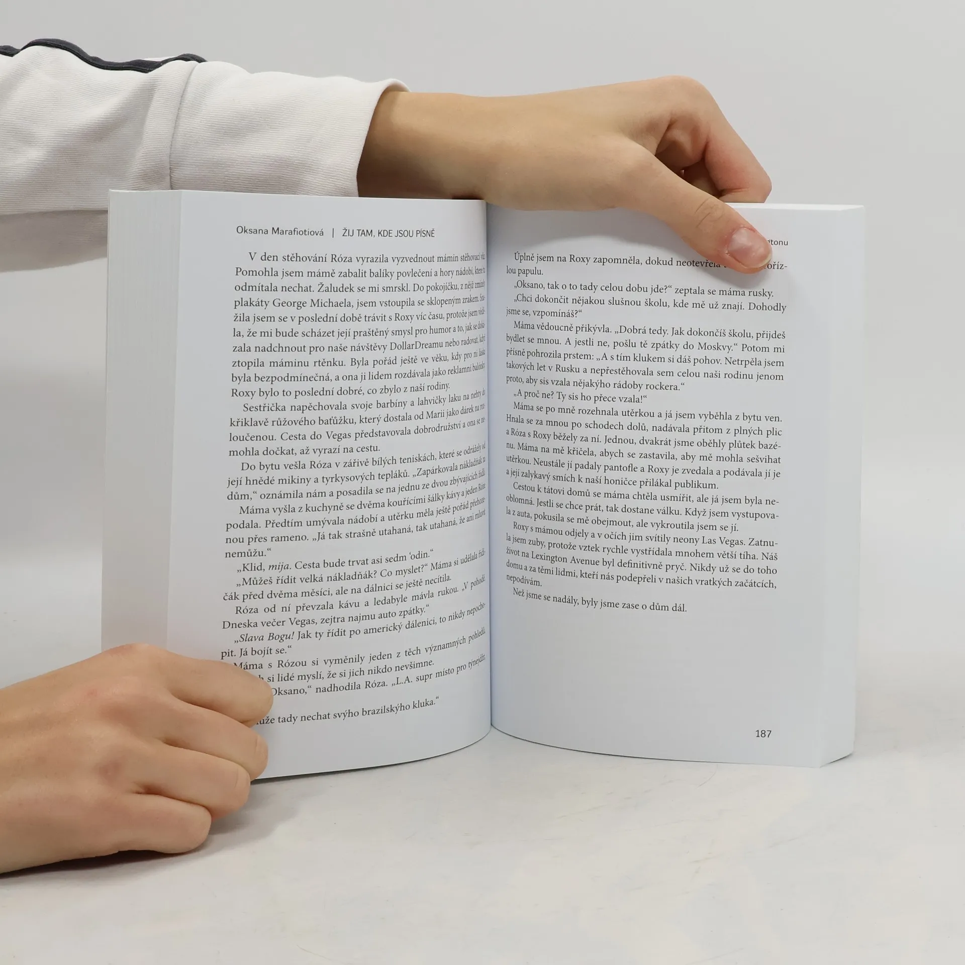 Jak ruská Romka dobyla Ameriku. Patnáctiletá Oksana se na první pohled jeví jako obyčejná americká puberťačka, ve skutečnosti se v ní však sváří dvě starobylé kultury, romská a arménská, zarámované dětstvím v Sovětském svazu. Každý člen její neobvyklé rodiny – dědeček divadelní principál, babička čarodějka, otec milovník okultních věd i bohémská matka – se do ní nezapomenutelně otisknul a zanechal v ní nezodpovězenou otázku: Kdo vlastně jsem? Emigrace do Spojených států navíc přinesla řadu nepříjemných překvapení. Amerika vždycky nevypadá jako v klipech na MTV a rodina nedrží bezpodmínečně při sobě. Každý se s rolí přistěhovalce vyrovnává po svém, někdo panákem navíc, někdo otevřením věšteckého salonu, Oksana se ale učí docenit bohatou tapiserii svého původu a najít klid v sobě samé a nikoli v uznání ostatních. Životní příběh Oksany Marafiotiové (*1974) má rysy bláznivé komedie, současně je však prosycen lehkým smutkem nad ztrátou nevinnosti a původního způsobu života. Autorka ve své prvotině boří předsudky o Romech a odhaluje kus neznámého světa, a přitom apeluje na to univerzálně lidské v nás.
