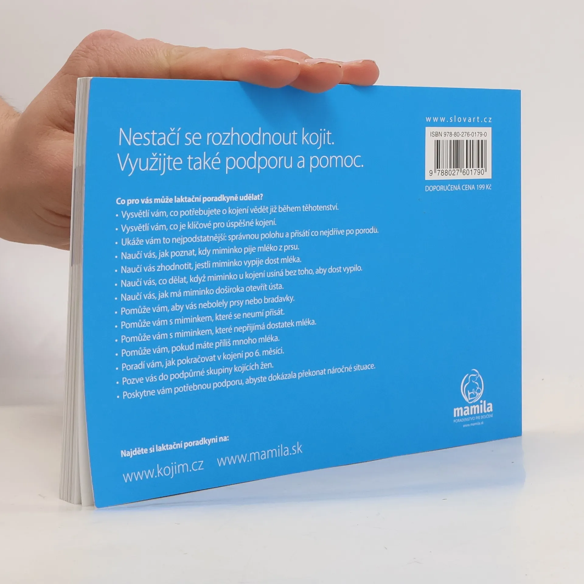 Existuje propastný rozpor mezi tím, jak by kojení mohlo být jednoduché a jak jsou mnohé ženy šokovány problémy v prvních hodinách kojení. Počátky kojení je mnohdy zaskočí víc než porod. Z otázky „Co může být na kojení tak složité?" se stane zoufalý dotaz „Jak to, že nestačí miminko přiložit k prsu a proč mi každý radí něco jiného?". Tato kniha vám díky spoustě fotografií názorně ukáže, co máte dělat krok za krokem od prvních chvil po narození miminka. Je to průvodce kojením pro všechny, a to nejen pro matky, ale i pro ty, kteří jim s kojením pomáhají. Budete mít po ruce překvapivě jednoduché postupy, které nedělají z kojení vědu. Kniha vám ukáže, jaké potřeby miminka mají, jak na ně reagovat a jak díky kojení můžete s dítětem navázat úzký vztah. Odhalí vám, jak první hodina po porodu ovlivní celé kojení a co můžete dělat, když miminko pláče nebo neprospívá, či jak poznat, jestli má hlad. V těhotenství tuto knížku neodložíte, dokud ji nedočtete. Po porodu se k ní budete vracet a pořád vám bude ležet na nočním stolku, protože ji tam budete jednoduše potřebovat.