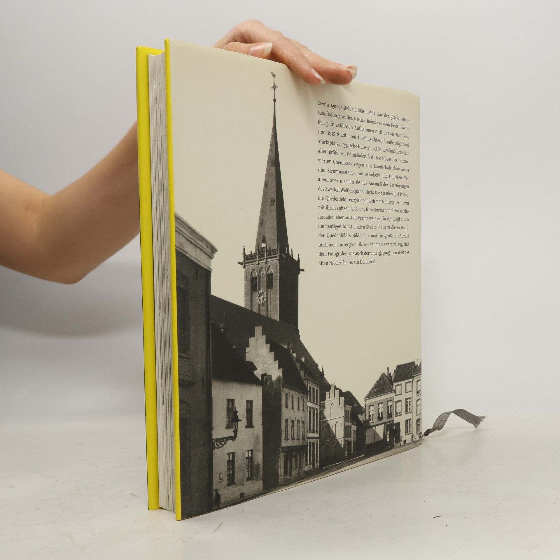 Erwin Quedenfeldt (1869–1948) war der große Landschaftsfotograf des Niederrheins vor dem Ersten Weltkrieg. In zahllosen Aufnahmen hielt er zwischen 1904 und 1915 Stadt und Dorfansichten, Straßenzüge und Marktplätze, typische Häuser und Baudenkmäler in fast allen größeren Gemeinden fest. Die Bilder des promovierten Chemikers zeigen eine Landschaft ohne Autos und Strommasten, ohne Bahnhöfe und Fabriken. Vor allem aber machen sie das Ausmaß der Zerstörungen des Zweiten Weltkriegs deutlich: Die Straßen und Plätze, die Quedenfeldt enzyklopädisch porträtierte, erinnern mit ihren spitzen Giebeln, Kirchtürmen und Backsteinfassaden eher an Jan Vermeers Ansicht von Delft als an die heutigen funktionalen Städte. So setzt dieser Band, der Quedenfeldts Bilder erstmals in größerer Anzahl und einem unvergleichlichen Panorama vereint, zugleich dem Fotografen wie auch der untergegangenen Welt des alten Niederrheins ein Denkmal.
