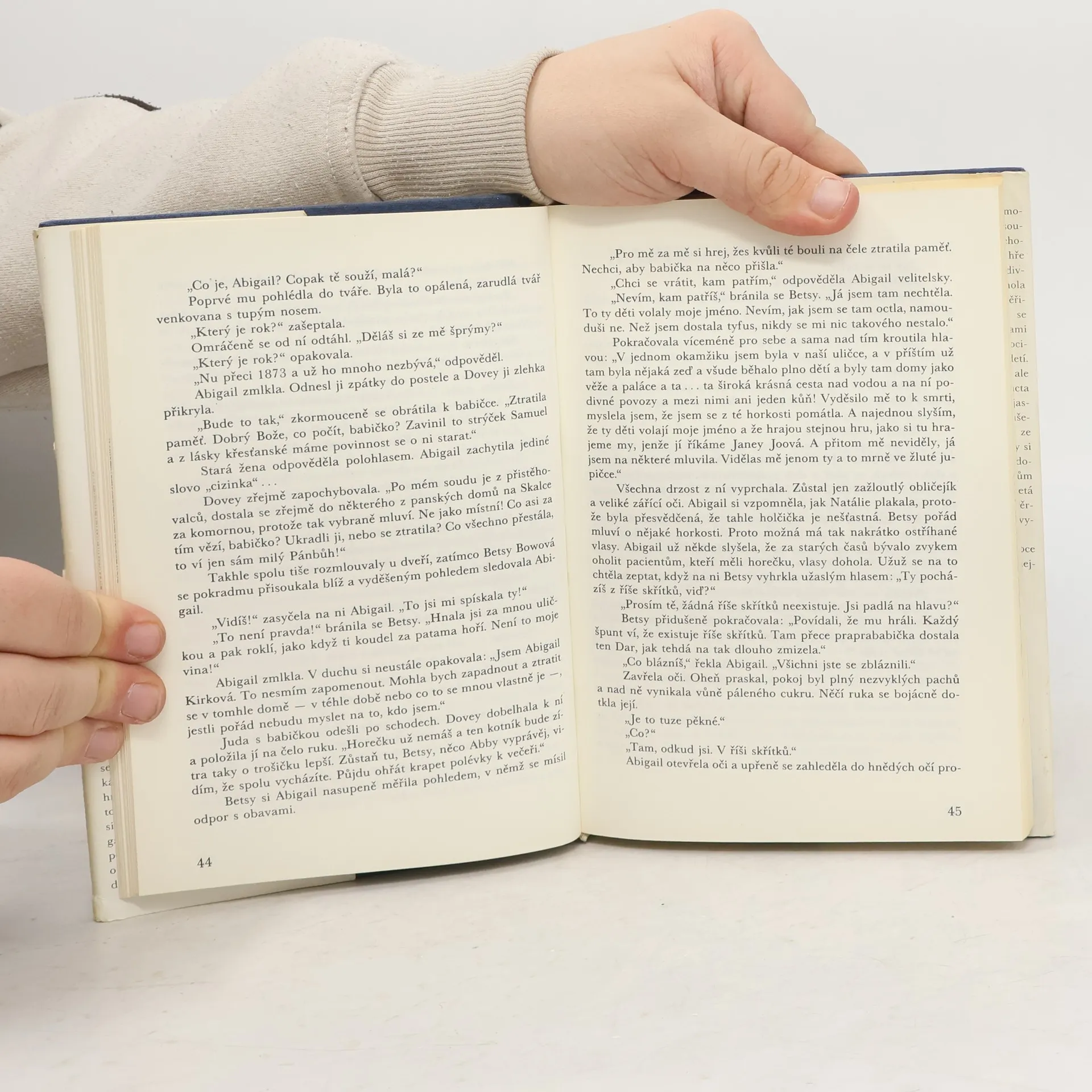 Australská spisovatelka Ruth Parková nejen děti dobře zná, ale má pro ně i plné pochopení. Proto také ví, co asi se odehrává v desetileté Lyn Kirkové, když se její rodiče znenadání rozejdou. Lyn se sice přizpůsobí novému životu s maminkou v nádherném věžáku uprostřed staré čtvrti Sydney, s radostí se přehrabuje ve starodávných tretkách maminčina obchůdku Stračí hnízdo, ale proti otci se zatvrdí natolik, že i jméno, jímž ji oslovoval, si změní na čarodějně znějící Abigail. Když pak za čtyři roky rodiče poznají svůj omyl a chtějí se k sobě opět vrátit, nese to jako dvojí zradu. Abigail ze svého prázdného domova často zajde na návštěvu k sousedce a s jejími malými dětmi chodívá na hřiště. Při strašidelné hře na Betsy Bowovou si všimne podivné holčičky, bosé a téměř dohola ostříhané, a ta ji zavede do neuvěřitelného dobrodružství. Najednou se ocitá v 70. letech předminulého století.