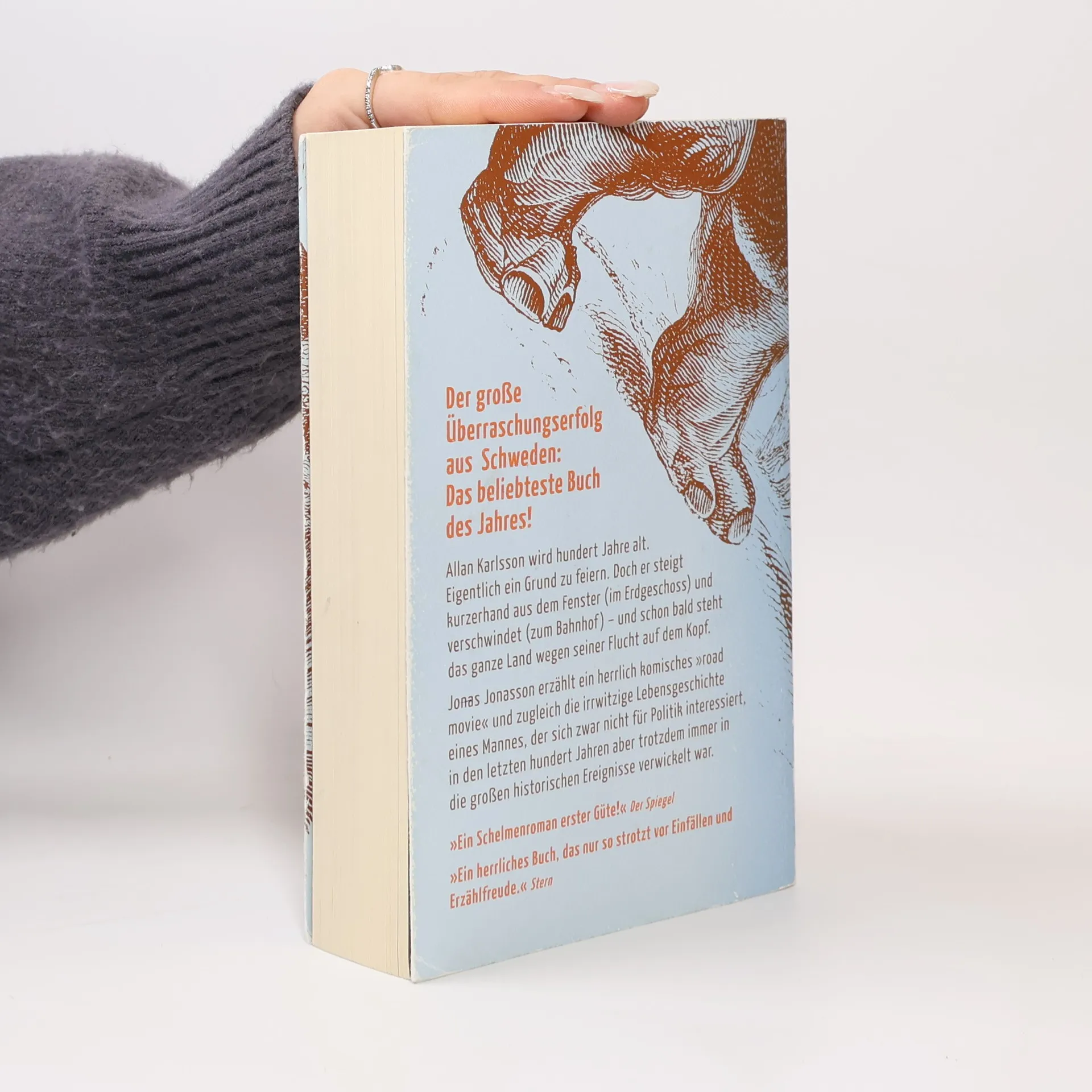 Allan Karlsson hat Geburtstag. Er wird 100 Jahre alt. Eigentlich ein Grund zu feiern. Doch während sich der Bürgermeister und die lokale Presse auf das große Spektakel vorbereiten, hat der Hundertjährige ganz andere Pläne: er verschwindet einfach – und schon bald steht ganz Schweden wegen seiner Flucht auf dem Kopf. Doch mit solchen Dingen hat Allan seine Erfahrung, er hat schließlich in jungen Jahren die ganze Welt durcheinander gebracht.Jonas Jonasson erzählt in seinem Bestseller von einer urkomischen Flucht und zugleich die irrwitzige Lebensgeschichte eines eigensinnigen Mannes, der sich zwar nicht für Politik interessiert, aber trotzdem irgendwie immer in die großen historischen Ereignisse des 20. Jahrhunderts verwickelt war.