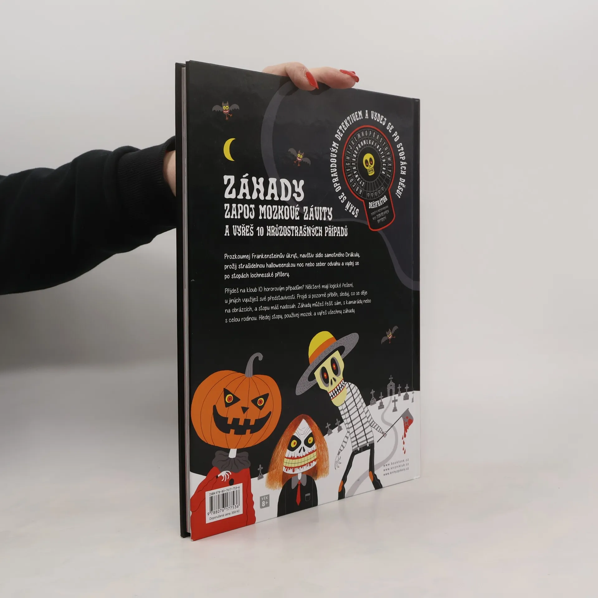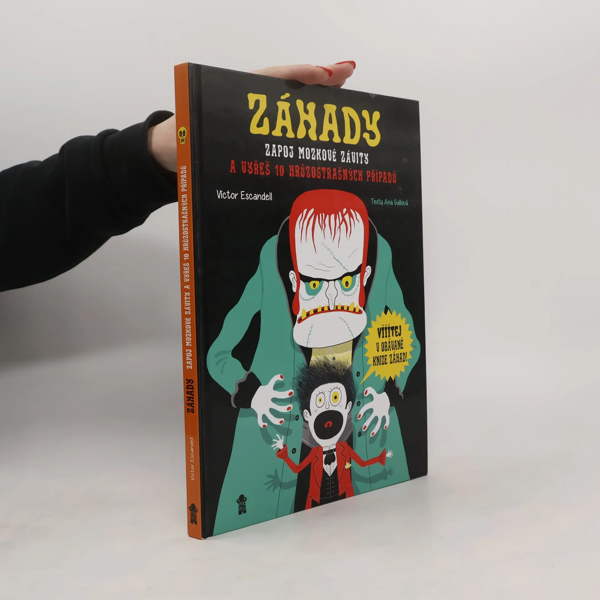 Vítej v obávané knize záhad! Přijdeš na kloub poutavým záhadám, které se hemží hrůzostrašnými persónami? V hlavních rolích se představí Frankenstein, čarodějnice s pořádnými bradavicemi, mumie, vlkodlak a další úžasné bytosti, které tě provedou světem přímo hororovým! Některé záhady mají logické řešení, u jiných využiješ své představivosti. Hledej v zábavných obrázcích, a stopu máš nadosah. Záhady můžeš řešit sám, s kamarády nebo s celou rodinou. Staň se opravdovým detektivem! Hledej stopy, používej mozek a vyřeš všechny záhady. Věnováno dětem od 8 let a jejich rodičům, kteří mají chuť přicházet na kloub záhadám a bát se!