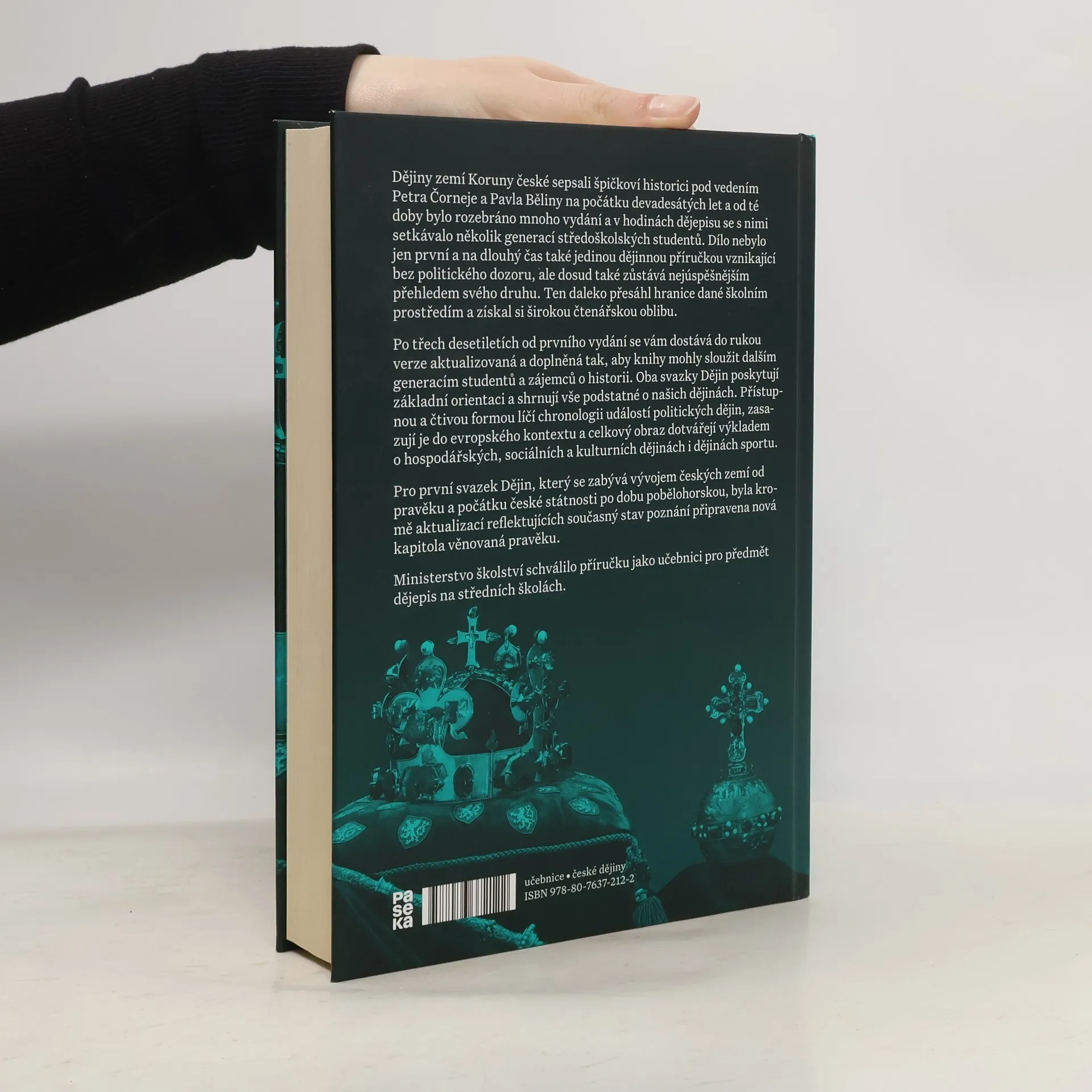 Nejúspěšnější učebnice dějin českých zemí se dočkala nového, revidovaného a doplněného vydání. Přehledná příručka poskytuje základní orientaci a shrnuje vše podstatné o našich dějinách na úrovni středoškolských znalostí. Přístupnou formou líčí chronologii událostí politických dějin, zasazuje je do evropského kontextu a celkový obraz dotváří výkladem o hospodářských, sociálních a kulturních dějinách. Od pravěku a počátků české státnosti je výklad doveden až k roku 1992, k rozdělení republiky. Od devadesátých let, kdy byla učebnice napsána, se projevila potřeba revizí a doplnění. Revidován byl celý text a pro toto vydání vznikly zcela nové kapitoly věnované pravěku, první světové válce a období let 1945–1992. Nově byly zpracovány mapy, částečně obměněn byl obrazový doprovod a dvoudílná kniha získala moderní grafický kabát. Historická příručka je dílem kolektivu renomovaných historiků ve složení Pavel Bělina, Petr Čornej, Ivana Čornejová, Jan Frolík, Jaroslav Halada, Jaroslav Hrbek, Dagmar Moravcová, Jiří Pernes, Jiří Pokorný, Jiří Rak, Josef Tomeš a Vratislav Vaníček.