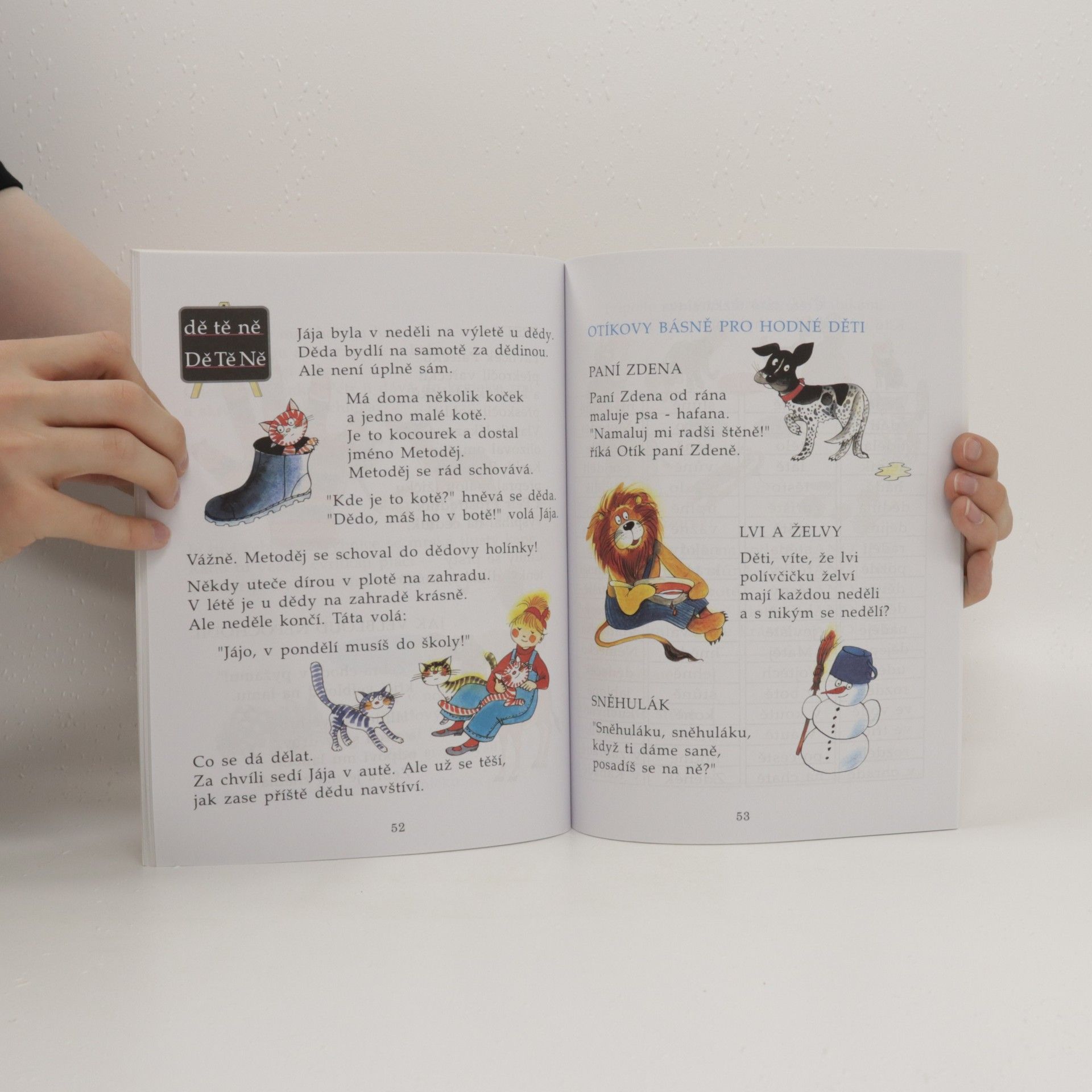 Slabikář dětem barevně a přitažlivě otevírá svět jazyka. Úvodní část celobarevné publikace ilustrované Zdenkou Krejčovou je určena pro přípravné období a zaměřuje se především na rozhovoření dětí. Následně se vyvozují jednotlivé hlásky – začíná se samohláskami, tak se děti nejdříve dostanou k tvoření slabik a celých slov a čtení pro ně začíná mít význam i jako aktivita, která jim pomáhá něco nového se dozvědět. Pak se ve Slabikáři postupně objevují první krátké a velmi jednoduché, přece však již souvislé pasáže ke čtení. Verše, obrázky a poutavé úkoly vytvářejí milý příběh dvou dětských postaviček, malé školačky Jáji a pohádkového kluka Oty. Učiteli je k dispozici řada různorodých cvičení, která usnadňují výuku tím, jak přirozeně využívají dětskou kreativitu a zvídavost. Očekávané výstupy a kompetence dle RVP jsou naplňovány nenásilnou formou. Děti čtení chápou rovnou jako příjemný prostředek k dalšímu rozvoji, jako aktivitu, která není sama o sobě cílem, ale něco nového a přitažlivého jim přináší. Příběh malých hrdinů však také umožňuje přirozené vazby a přechody do oblasti Člověk a jeho svět. Děj citlivě upozorňuje na úskalí i úspěchy každodenní komunikace (pozdravy, omluvy atp.), života v rodině, mezi dětmi i s dospělými lidmi. Jednotlivé bloky si učitel může svobodně zařazovat podle vlastního uvážení a aktuálních potřeb dětí ve třídě.