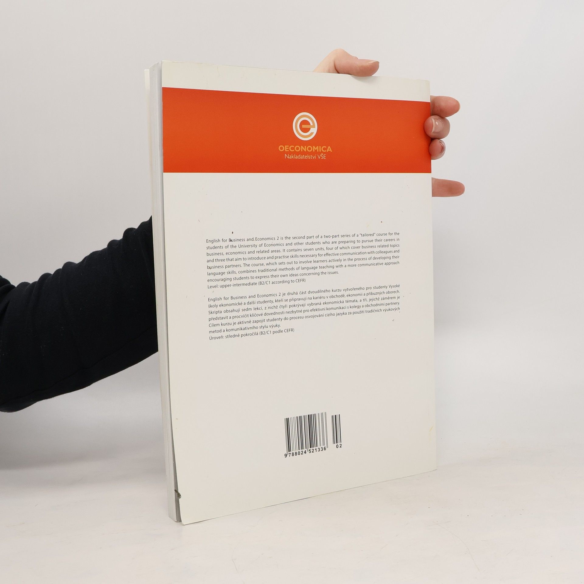 English for Business and Economics 2 is the second part of a two-part series of a "tailored" course for the students of the University of Economics and other students who are preparing to pursue their careers in business, economics and related areas. It contains seven units, four of which cover business related topics and three that aim to introduce and practise skills necessary for effective communication with colleagues and business partners. The course, which sets out to involve learners actively in the process of developing their language skills, combines traditional methods of language teaching with a more communicative approach encouraging students to express their own ideas concerning the issues. Level: upper-intermediate (B2/C1 according to CEFR) English for Business and Economics 2 je druhá část dvoudílného kurzu vytvořeného pro studenty Vysoké školy ekonomické a další studenty, kteří se připravují na kariéru v obchodě, ekonomii a příbuzných oborech. Skripta obsahují sedm lekcí, z nichž čtyři pokrývají vybraná ekonomická témata, a tři, jejichž záměrem je představit a procvičit klíčové dovednosti nezbytné pro efektivní komunikaci s kolegy a obchodními partnery. Cílem kurzu je aktivně zapojit studenty do procesu osvojování cizího jazyka za použití tradičních výukových metod a komunikativního stylu výuky. Úroveň: středně pokročilá (B2/C1 podle CEFR)