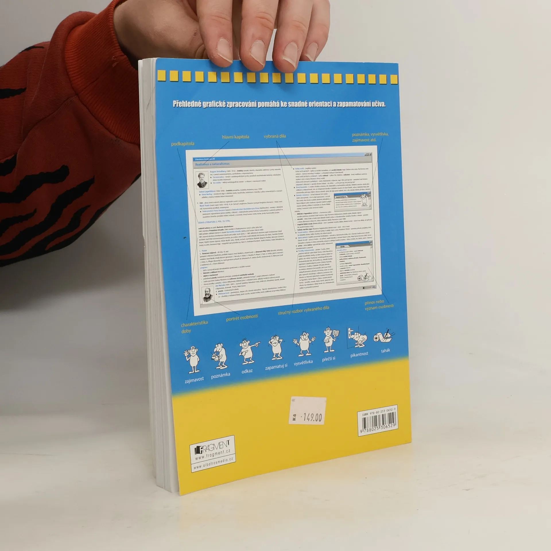 Učebnice, která přehledně shrnuje veškeré učivo světové a české literatury probírané na středních školách. Nejoblíbenější doplňková učebnice literatury připraví každého studenta nejen k maturitní zkoušce, ale i k přijímacím zkouškám na vysokou školu. Pátý dotisk 2. vydání, rok 2012. Edice: Maturita v kostce.