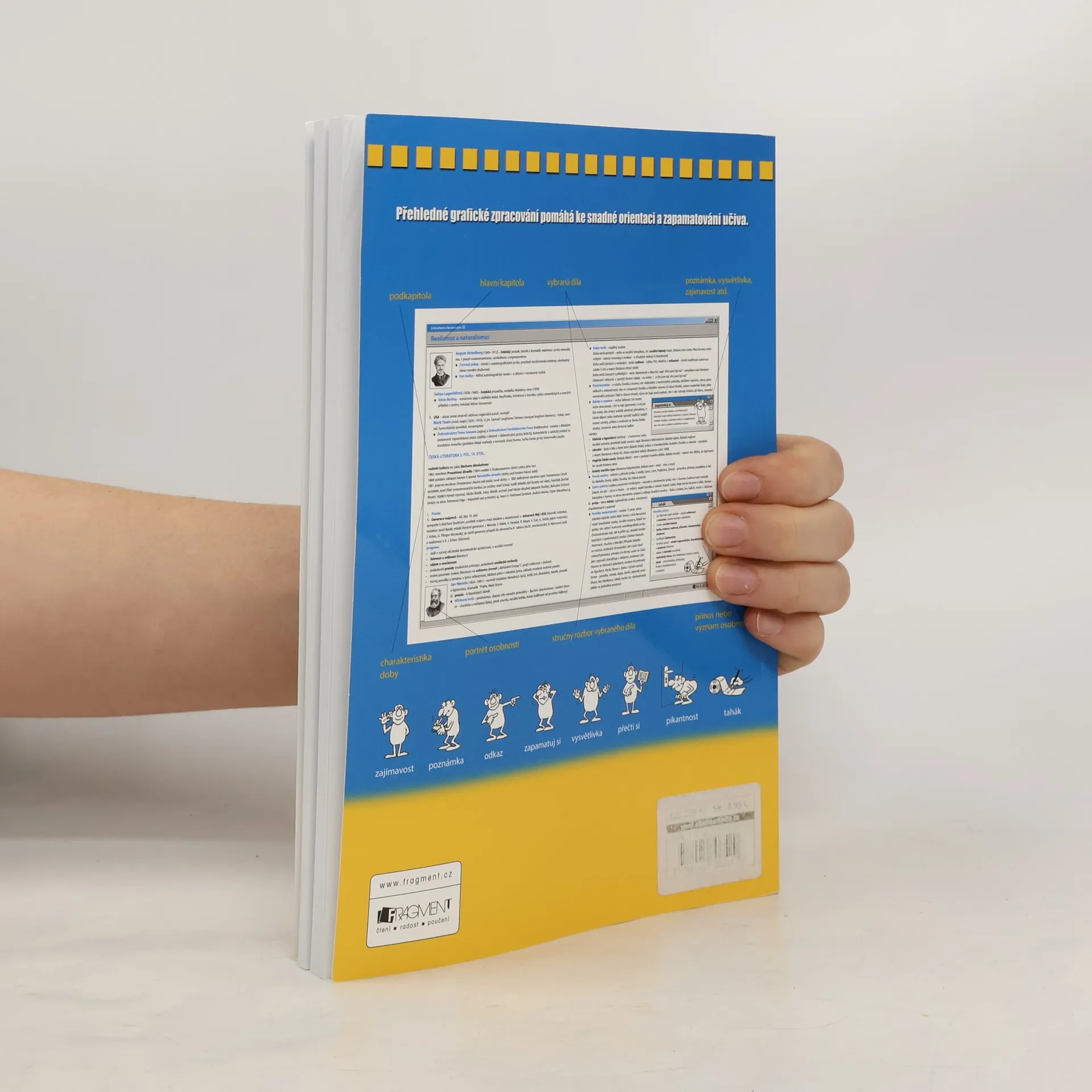 Učebnice, která přehledně shrnuje veškeré učivo světové a české literatury probírané na středních školách. Nejoblíbenější doplňková učebnice literatury připraví každého studenta nejen k maturitní zkoušce, ale i k přijímacím zkouškám na vysokou školu. Pátý dotisk 2. vydání, rok 2012. Edice: Maturita v kostce.
