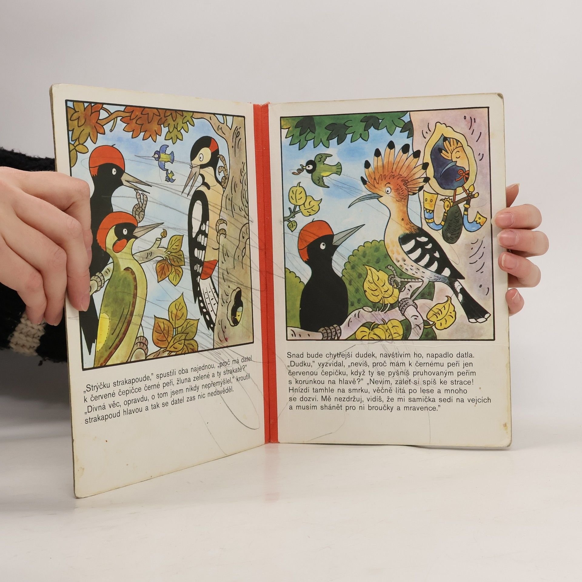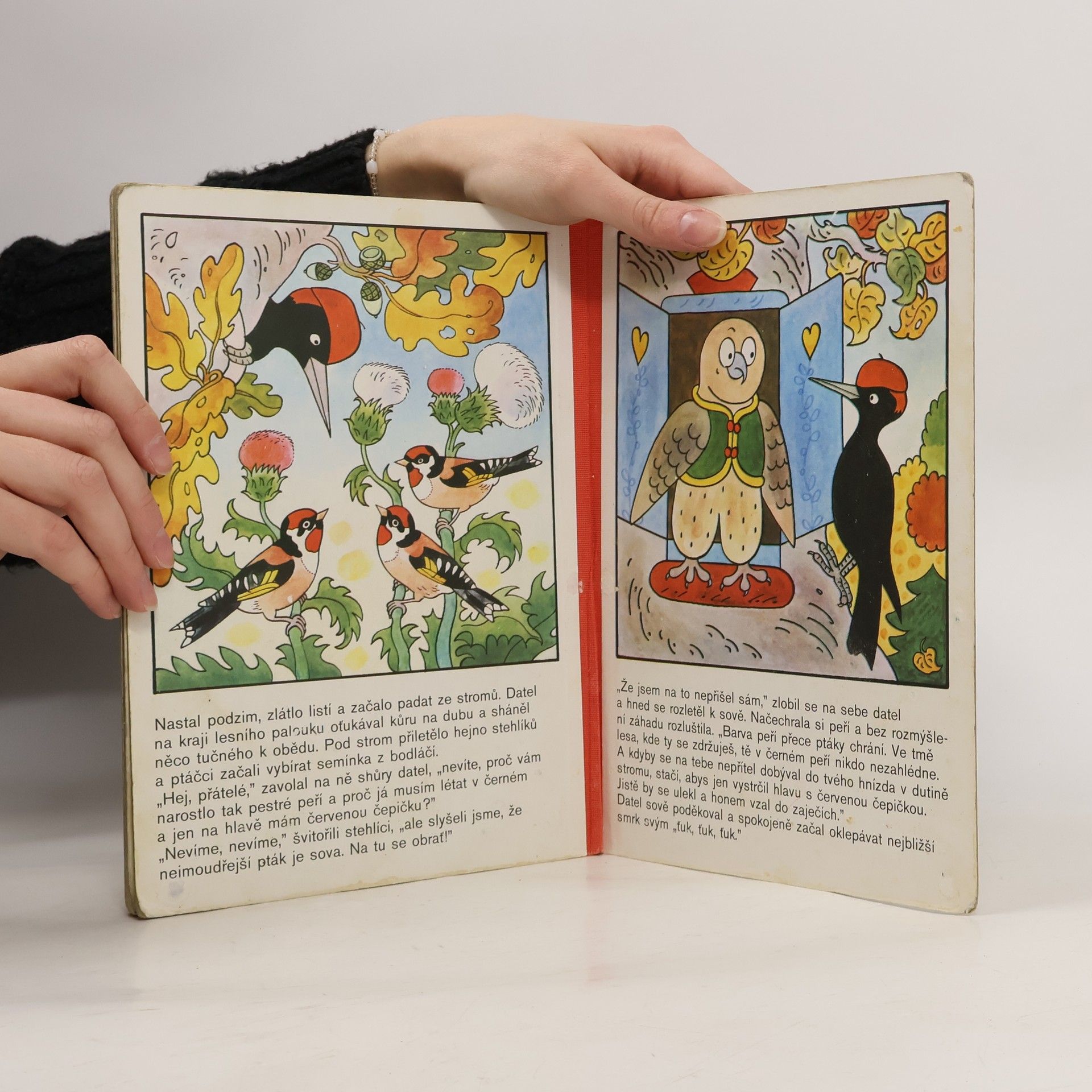 Klasické leporelo pro děti od 3 let vypráví jednoduchý příběh z ptačího světa… Zvědavého datla napadla zvláštní myšlenka – proč on má jen černé peří a červenou čepičku, když ostatní ptáci jsou tak krásně vybarvení? Radí se se žlunou, strakapoudem, dudkem, strakou, ledňáčkem, rackem, pávem, se stehlíky – až nakonec mu odpoví moudrá sova…