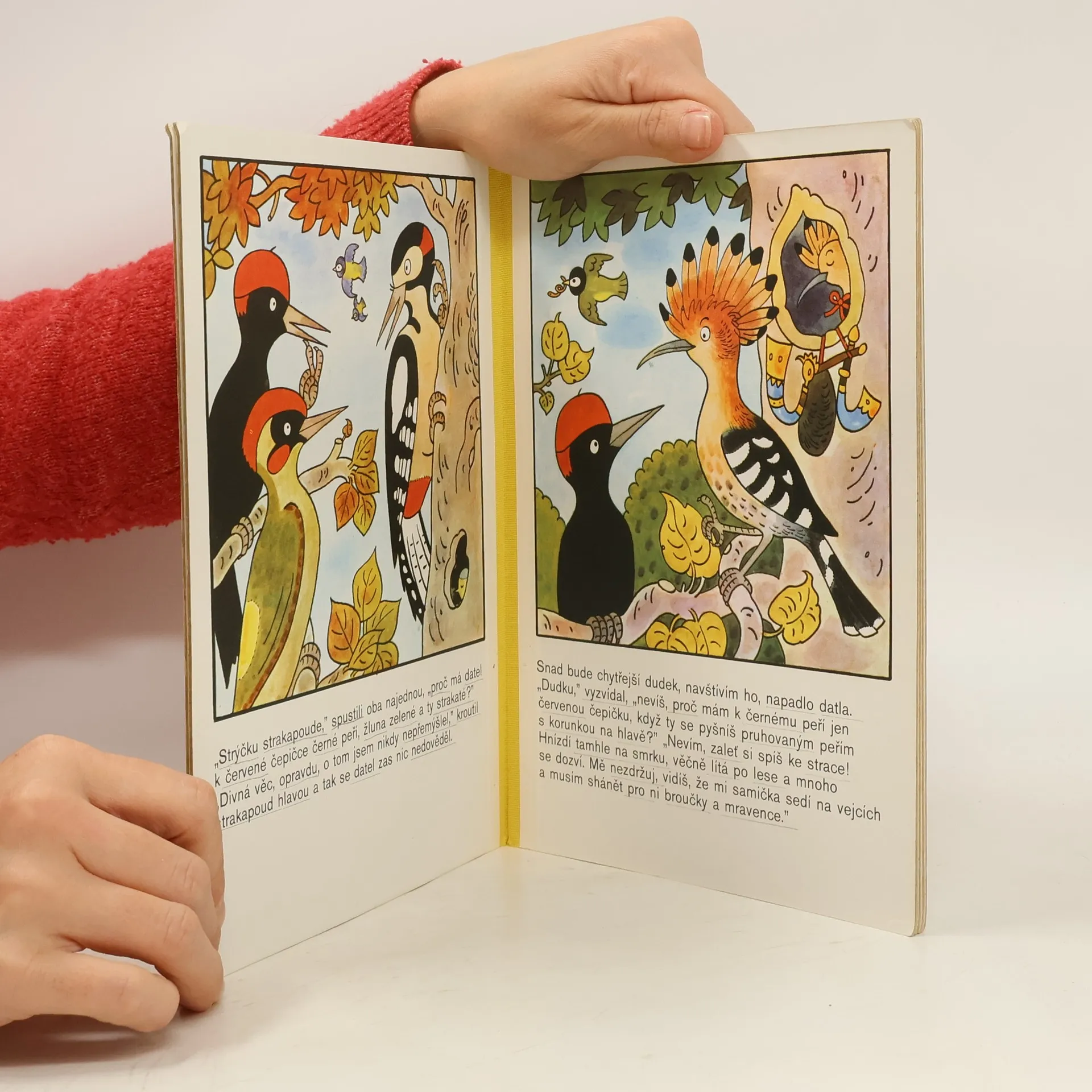 Klasické leporelo pro děti od 3 let vypráví jednoduchý příběh z ptačího světa… Zvědavého datla napadla zvláštní myšlenka – proč on má jen černé peří a červenou čepičku, když ostatní ptáci jsou tak krásně vybarvení? Radí se se žlunou, strakapoudem, dudkem, strakou, ledňáčkem, rackem, pávem, se stehlíky – až nakonec mu odpoví moudrá sova…