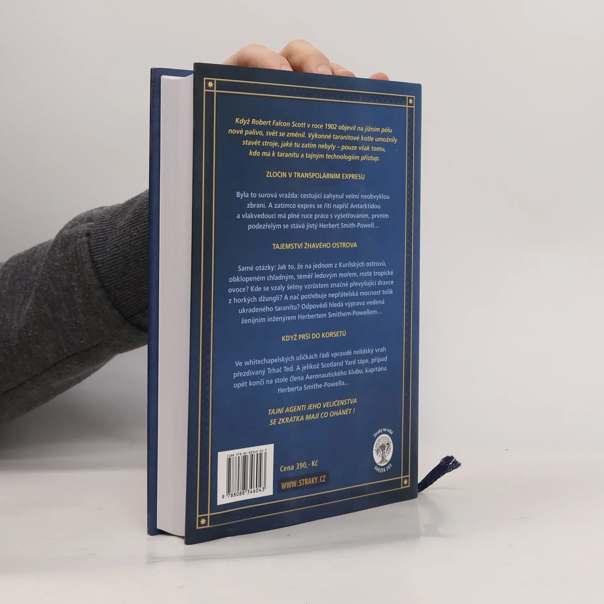 Když Robert Falcon Scott v roce 1902 objevil na jižním pólu nové palivo, svět se změnil. Výkonné taranitové kotle umožnily stavět stroje, jaké tu zatím nebyly – pouze však tomu, kdo má k taranitu a tajným technologiím přístup. ZLOČIN V TRANSPOLÁRNÍM EXPRESU Byla to surová vražda: cestující zahynul velmi neobvyklou zbraní. A zatímco expres se řítí napříč Antarktidou a vlakvedoucí má plné ruce práce s vyšetřováním, prvním podezřelým se stává jistý Herbert Smith-Powell… TAJEMSTVÍ ŽHAVÉHO OSTROVA Samé otázky: Jak to, že na jednom z Kurilských ostrovů, obklopeném chladným, téměř ledovým mořem, roste tropické ovoce? Kde se vzaly šelmy vzrůstem značně převyšující dravce z horkých džunglí? A nač potřebuje nepřátelská mocnost tolik ukradeného taranitu? Odpovědi hledá výprava vedená ženijním inženýrem Herbertem Smithem-Powellem… KDYŽ PRŠÍ DO KORSETŮ Ve whitechapelských uličkách řádí vpravdě nelidský vrah přezdívaný Trhač Ted. A jelikož Scotland Yard tápe, případ opět končí na stole člena Aeronautického klubu, kapitána Herberta Smithe-Powella... TAJNÍ AGENTI JEHO VELIČENSTVA SE ZKRÁTKA MAJÍ CO OHÁNĚT !