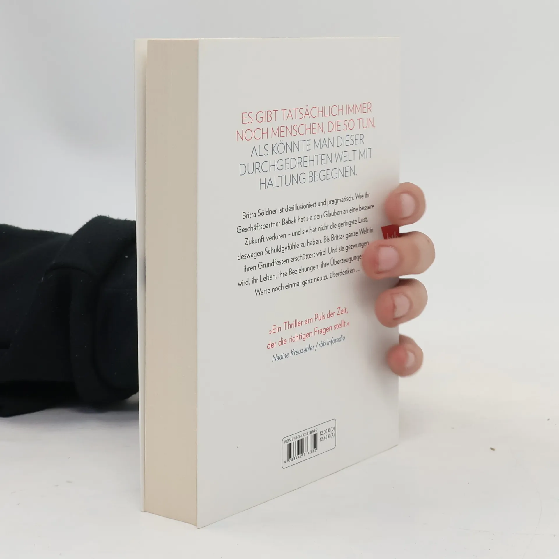 Britta Söldner ist desillusioniert und pragmatisch. Sie sieht die Dinge glasklar und hat den Zynismus der Politik genauso durchschaut wie das kleinbürgerliche Gutmenschentum, das die Welt keinen Deut besser macht. Wie ihr Geschäftspartner Babak hat sie den Glauben an eine bessere Zukunft verloren – und sie hat nicht die geringste Lust, deswegen Schuldgefühle zu haben. Bis Brittas ganze Welt in ihren Grundfesten erschüttert wird. Und sie gezwungen ist, ihr Leben, ihre Beziehungen, ihre Überzeugungen und Werte noch einmal ganz neu zu überdenken.