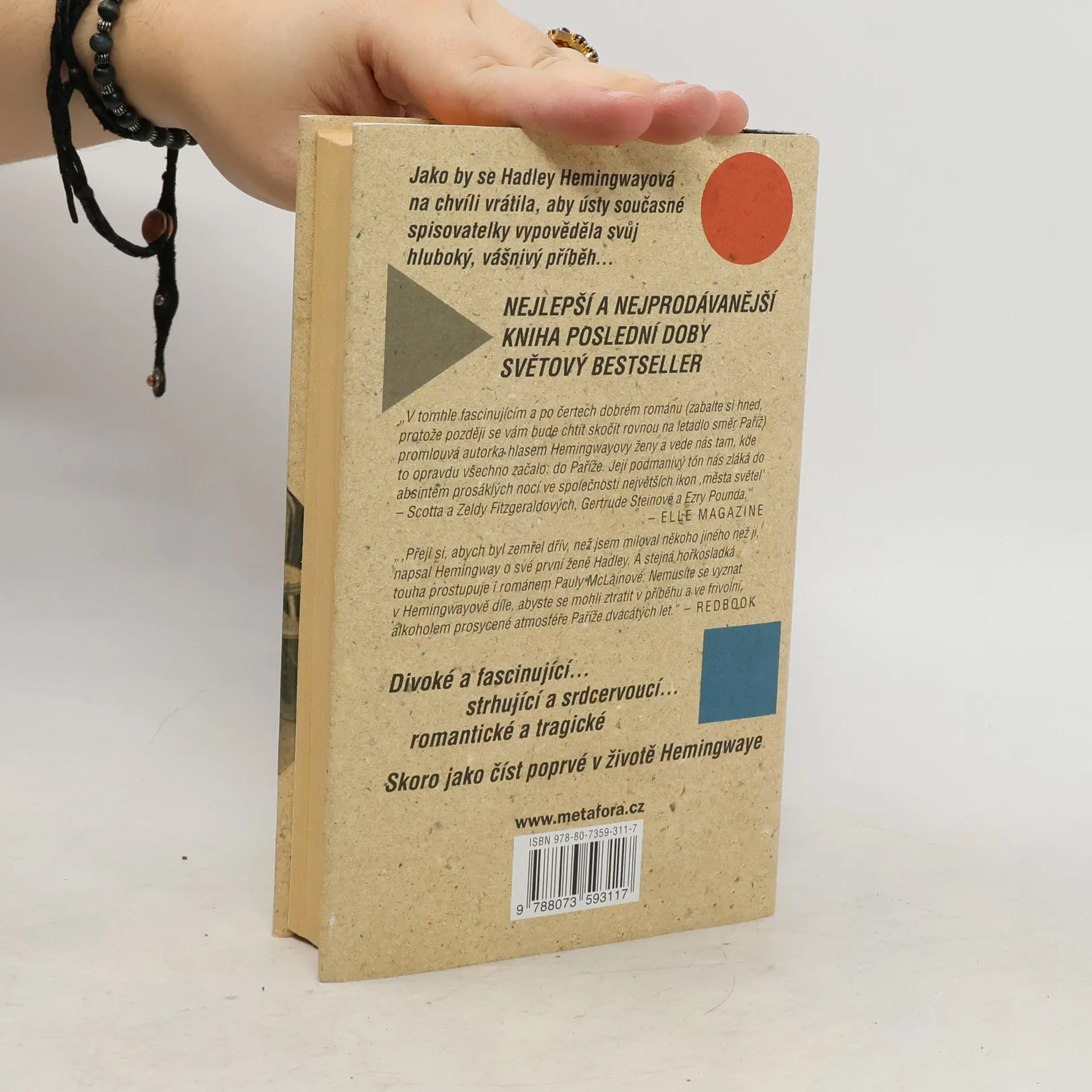 Dychtivost počínající lásky, proplétání citů a vztahů i bolest nečekaného, leč nevyhnutelného rozchodu, to všechno se vine příběhem manželství Hadley Richardsonové s Ernestem Hemingwayem. Na počátku je to jen mladík se sžíravou touhou uchopit mnohotvárnost světa a přetavit ji do slov, trpící děsivými nočními můrami z války a mučivou nejistotou. Poválečná Paříž je uvítá svými kavárničkami, uměleckými salony a nekonečnými večírky. Ernestovo ego trpí nedostatkem uznání, ale přesto hltá život naplno, fascinován jím stejně jako smrtí - na stránkách svých děl i v krvavé býčí aréně, kam se vrací, i když už se mu všechno hroutí pod rukama. Jejich divoká, bytostná láska jako by strávila sama sebe a dospěla k hořkému, přesto však osvobozujícímu konci…