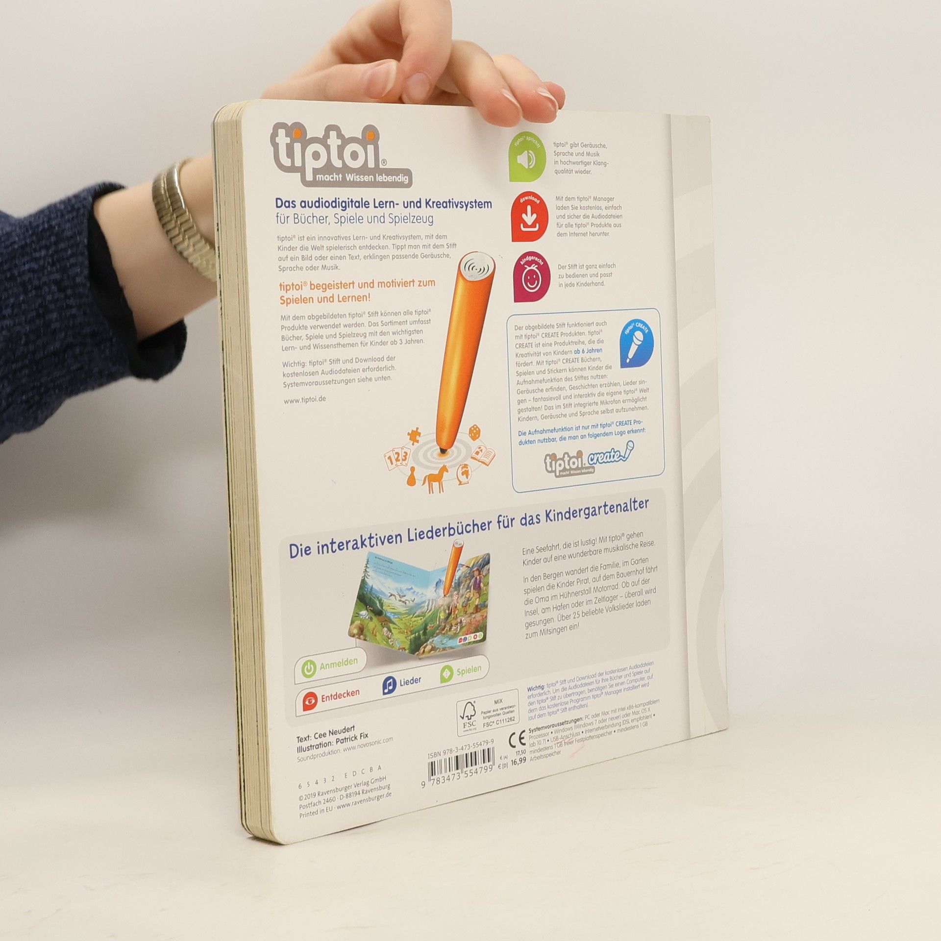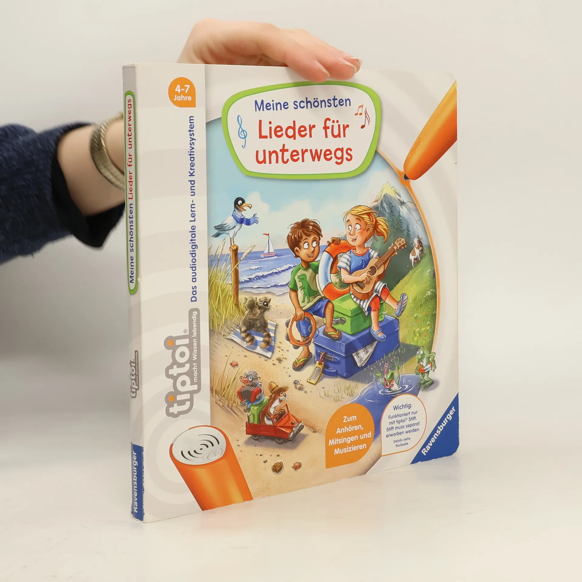 Eine Seefahrt, die ist lustig! Mit zahlreichen beliebten Volksliedern können Kinder richtig viel erleben. Das Buch im kleinen Format ist ideal zum Mitnehmen für unterwegs und auf Reisen oder für Zuhause. In den Bergen wandert die Familie, im Garten spielen die Kinder Pirat, auf dem Bauernhof fährt die Oma im Hühnerstall Motorrad. Ob auf der Insel, am Hafen oder im Zeltlager – überall wird gesungen. Mit den tiptoi Liederbüchern macht Singen besonders großen Spaß! Die abgedruckten Lieder können mit Gesang oder in der Instrumentalversion angehört werden. Die Gitarrenakkorde laden zum Musizieren ein. Neben den abgedruckten Liedern sind zahlreiche weitere auf den Bildern versteckt. Liebevolle Illustrationen werden durch kindgerechte Texte zum Leben erweckt. Lustige Reime und spannende Spiele lassen die Kinder in die Themenwelten eintauchen. Musik ist überall! tiptoi-Stift nicht enthalten. Muss separat erworben werden.