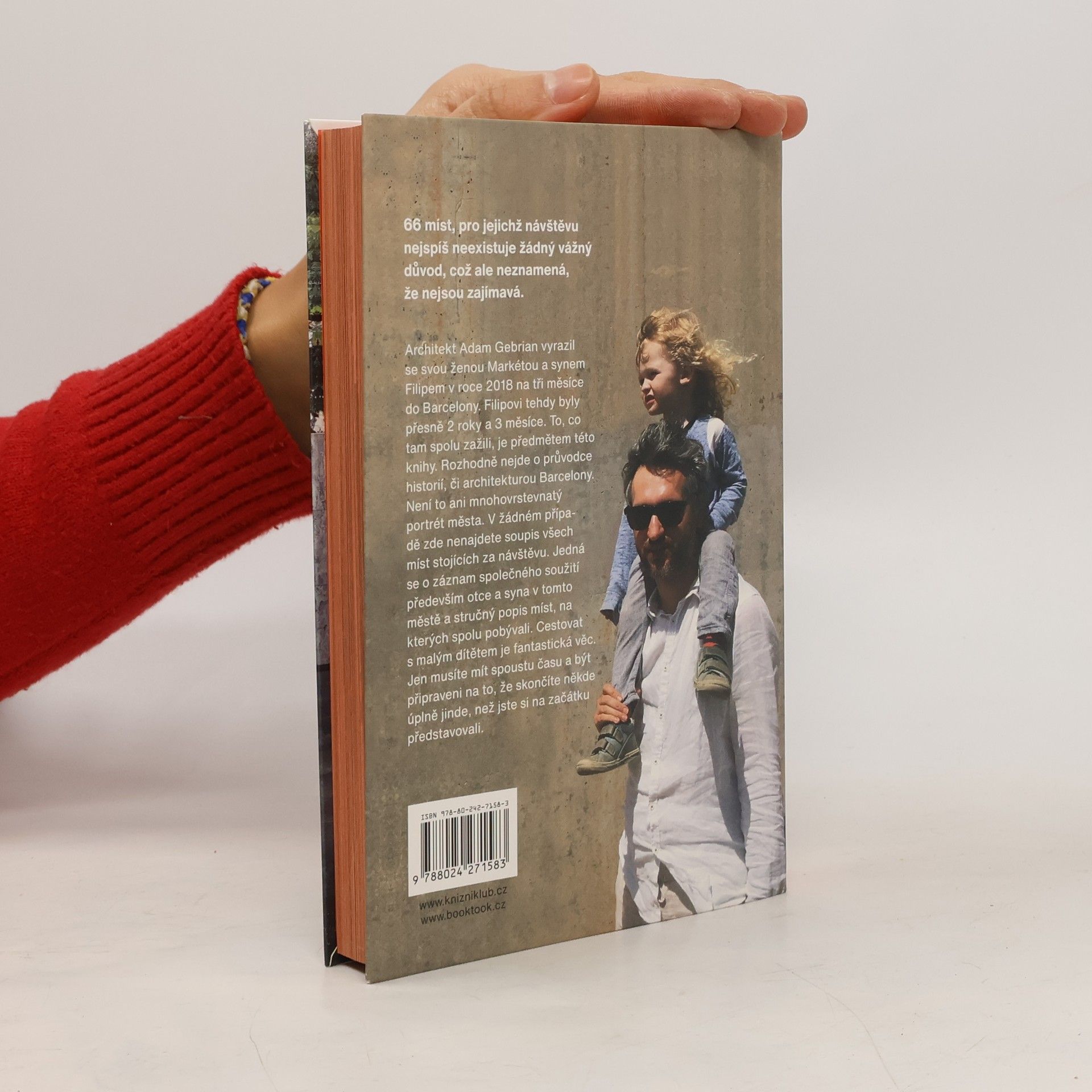 66 míst, pro jejichž návštěvu nejspíš neexistuje žádný vážný důvod, což ale neznamená, že nejsou zajímavá. Architekt Adam Gebrian vyrazil se svou ženou Markétou a synem Filipem v roce 2018 na tři měsíce do Barcelony. Filipovi tehdy byly přesně 2 roky a 3 měsíce. To, co tam spolu zažili, je předmětem této knihy. Rozhodně nejde o průvodce historií, či architekturou Barcelony. Není to ani mnohovrstevnatý portrét města. V žádném případě zde nenajdete soupis všech míst stojících za návštěvu. Jedná se o záznam společného soužití především otce a syna v tomto městě a stručný popis míst, na kterých spolu pobývali. Cestovat s malým dítětem je fantastická věc. Jen musíte mít spoustu času a být připraveni na to, že skončíte někde úplně jinde, než jste si na začátku představovali.