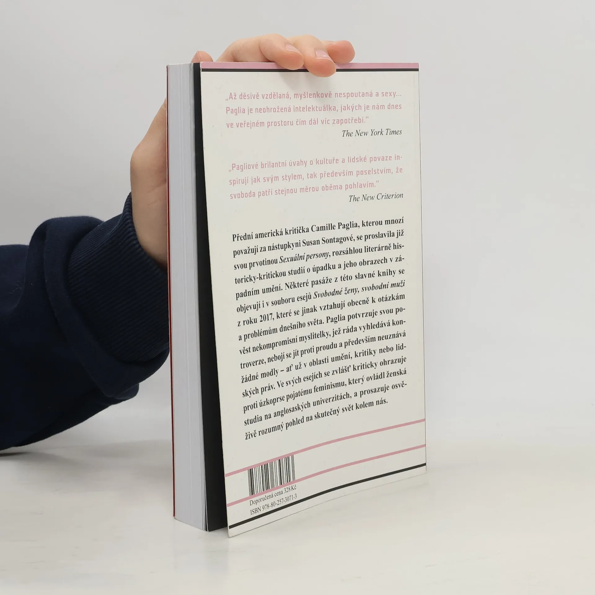 Provokativní, kritická, kontroverzní – to jsou adjektiva v poslední době nejčastěji spojovaná s Camille Pagliovou, přední americkou kritičkou, jež je někdy vnímána jako nástupkyně Susan Sontagové. V anglosaském světě se Pagliová proslavila literárně-kritickým bestsellerem Sexuální persony: umění a dekadence od Nefertiti po Emily Dickinsonovou, rozsáhlou literárně historicky-kritickou studií o úpadku a jeho obrazech v západním umění. Některé pasáže z této slavné knihy se objevují i ve sbírce esejů Svobodné ženy, svobodní muži, která je ovšem jinak obecně vztažena k tématům a problémům dnešního světa. Pagliová zde dostává své pověsti kritické myslitelky, jež vyhledává kontroverze, chce provokovat a především neuznává žádné modly – ať už v oblasti umění, kritiky nebo lidských práv. Její provokativní osten míří především proti dvěma terčům: feminismu v podobě, do jaké se vyvinul zejména v posledních několika letech, a situaci na anglosaských univerzitách, zejména omezování svobody projevu.