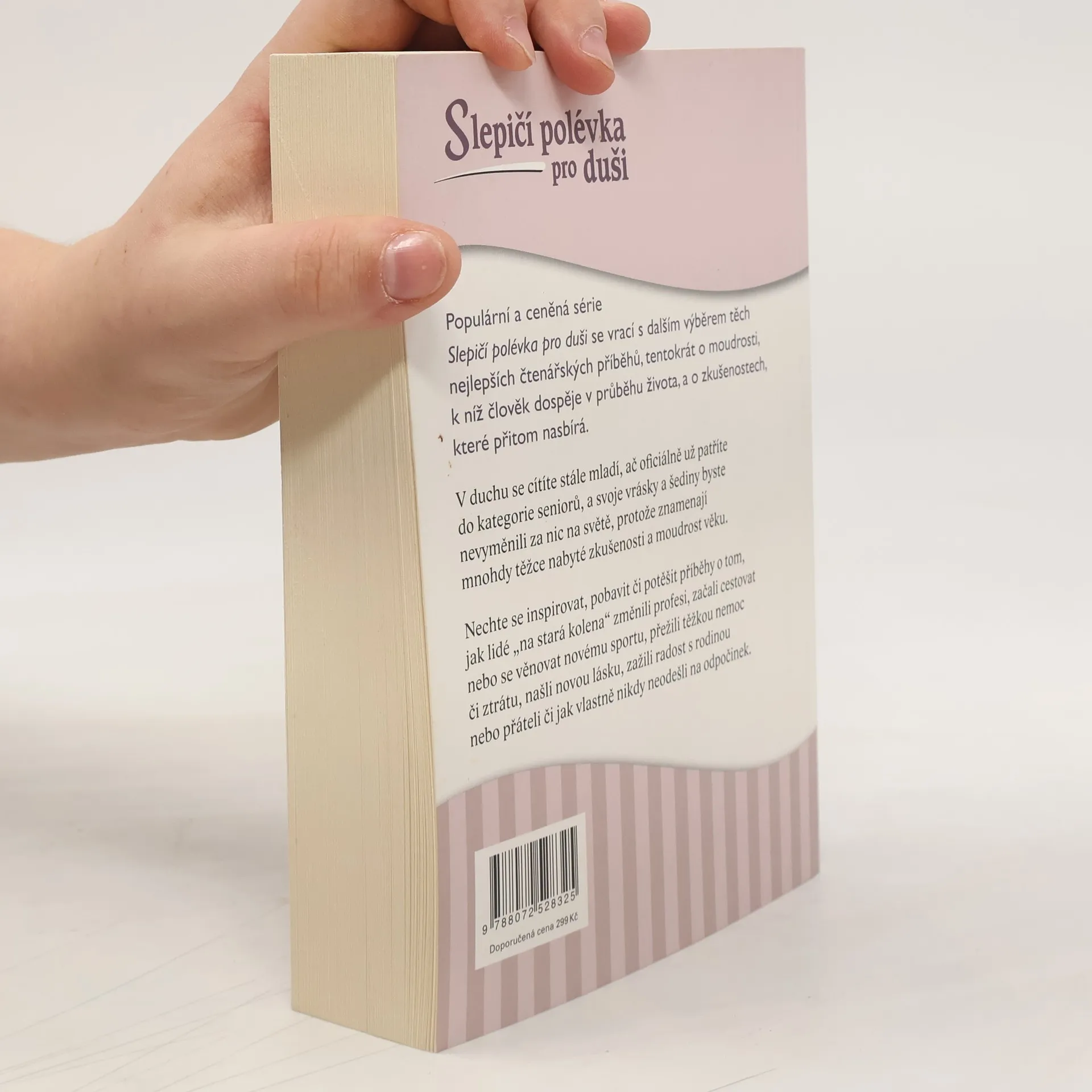 Populární a ceněná série Slepičí polévka pro duši se vrací s dalším výběrem těch nejlepších čtenářských příběhů, tentokrát o moudrosti, k níž člověk dospěje v průběhu života, a o zkušenostech, které přitom nasbírá. V duchu se cítíte stále mladí, ač oficiálně už patříte do kategorie seniorů, a svoje vrásky a šediny byste nevyměnili za nic na světě, protože znamenají mnohdy těžce nabyté zkušenosti a moudrost věku. Nechte se inspirovat, pobavit či potěšit příběhy o tom, jak lidé "na stará kolena" změnili profesi, začali cestovat nebo se věnovat novému sportu, přežili těžkou nemoc či ztrátu, našli novou lásku, zažili radost s rodinou nebo přáteli či jak vlastně nikdy neodešli na odpočinek.