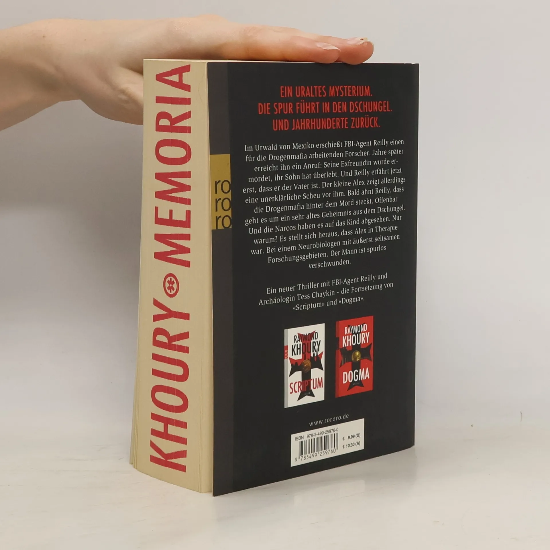 Ein uraltes Mysterium. Die Spur führt in den Dschungel. Und Jahrhunderte zurück. Im Urwald von Mexiko erschießt FBI-Agent Reilly einen für die Drogenmafia arbeitenden Forscher. Jahre später erreicht ihn ein Anruf: Seine Exfreundin wurde ermordet, ihr Sohn hat überlebt. Und Reilly erfährt jetzt erst, dass er der Vater ist. Der kleine Alex zeigt allerdings eine unerklärliche Scheu vor ihm. Bald ahnt Reilly, dass die Drogenmafia hinter dem Mord steckt. Offenbar geht es um ein sehr altes Geheimnis aus dem Dschungel. Und die Narcos haben es auf das Kind abgesehen. Nur warum? Es stellt sich heraus, dass Alex in Therapie war. Bei einem Neurobiologen mit äußerst seltsamen Forschungsgebieten. Der Mann ist spurlos verschwunden. Ein neuer Thriller mit FBI-Agent Reilly und Archäologin Tess Chaykin – die Fortsetzung von «Scriptum» und «Dogma».