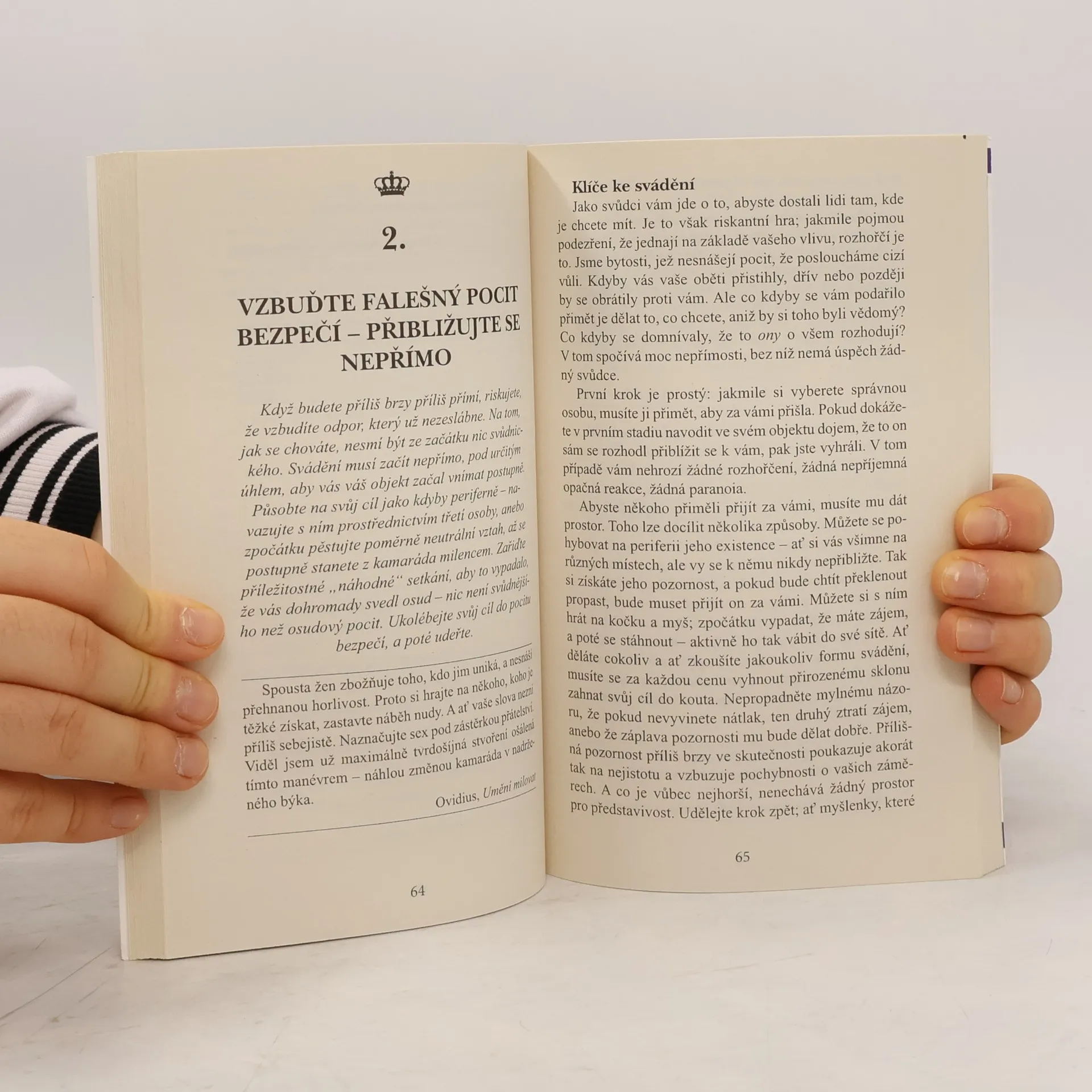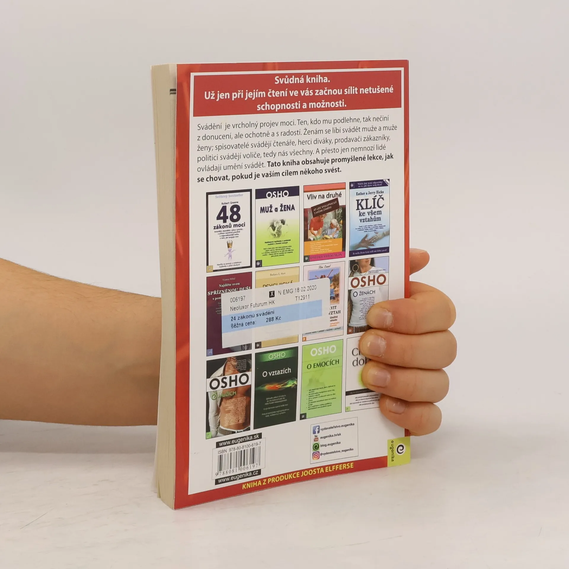 Tato kniha je hlavně o psychologickém svádění, aby lidé podlehli vašemu kouzlu. Už jen při jejím čtení ve vás začnou sílit netušené schopnosti a možnosti. Svádění je vrcholný projev moci. Ten, kdo mu podlehne, tak nečiní z donucení, ale ochotně a s radostí. Ženám se líbí svádět muže a muže ženy; spisovatelé svádějí čtenáře, herci diváky, prodavači zákazníky, politici svádějí voliče, tedy nás všechny. A přesto jen nemnozí lidé ovládají umění svádět. Tato kniha obsahuje promyšlené lekce, jak se chovat, pokud je vaším cílem někoho svést. Robert Greene je velký znalec lidské duše. Jeho styl psaní je velmi inteligentní, kultivovaný, inspirativní a vtipný. Vypráví o tom, co je pro člověka lákavé a svůdné, tak poutavě, že už jen při čtení těchto stránek máme chuť zažít něco vzrušujícího, krásného a neobyčejného. Uvedená důkladně podložená vysvětlení se týkají univerzálních lidských sklonů, tužeb a slabostí. Vnímavý čtenář si z nich snadno vyvodí obecnější poznatky, jež může aplikovat i jinde než v oblasti erotiky a lásky. Svádění je velmi mocná psychologická hra. Moudrý autor proto nezapomíná ani na důležitá varování a upozornění. Hlavním cílem je totiž užívat si život nad rámec všednosti, povinností a omezení.