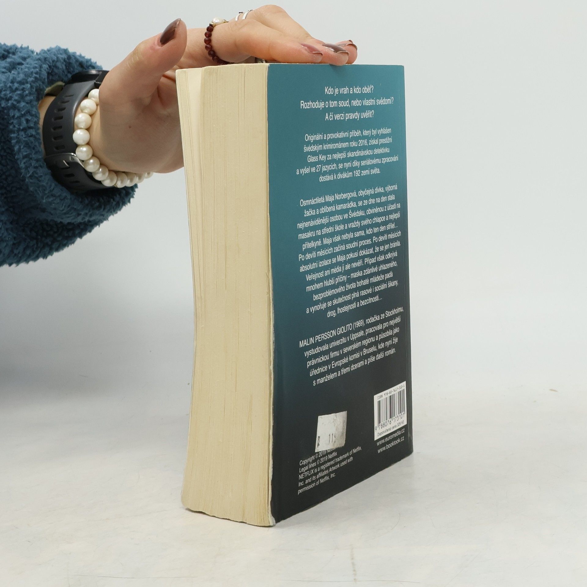 Severský krimiromán roku 2016, nositel prestižní Glass Key za nejlepší skandinávskou detektivku roku, vyšel ve 27 jazycích - a v podobě televizního seriálu přístupného od 5. dubna tohoto roku na Netflixu se tento provokativní a originální příběh dostane k divákům 192 zemí celého světa. Osmnáctiletá Maja Norbergová, obyčejná dívka, výborná žačka a oblíbená kamarádka, se ze dne na den stala nejnenáviděnější osobou ve Švédsku, obviněnou z účasti na masakru na střední škole a vraždy svého chlapce a nejlepší přítelkyně. Maja však nebyla sama, kdo ten den střílel… Po devíti měsících začíná soudní proces. Po devíti měsících absolutní izolace se Maja pokusí dokázat, že se jen bránila. Veřejnost ani média jí ale nevěří. Případ však odkrývá mnohem hlubší příčiny – maska zdánlivě uhlazeného, bezproblémového života bohaté mládeže padá a vynořuje se skutečnost plná rasové i sociální šikany, drog, lhostejnosti a bezcitnosti…
