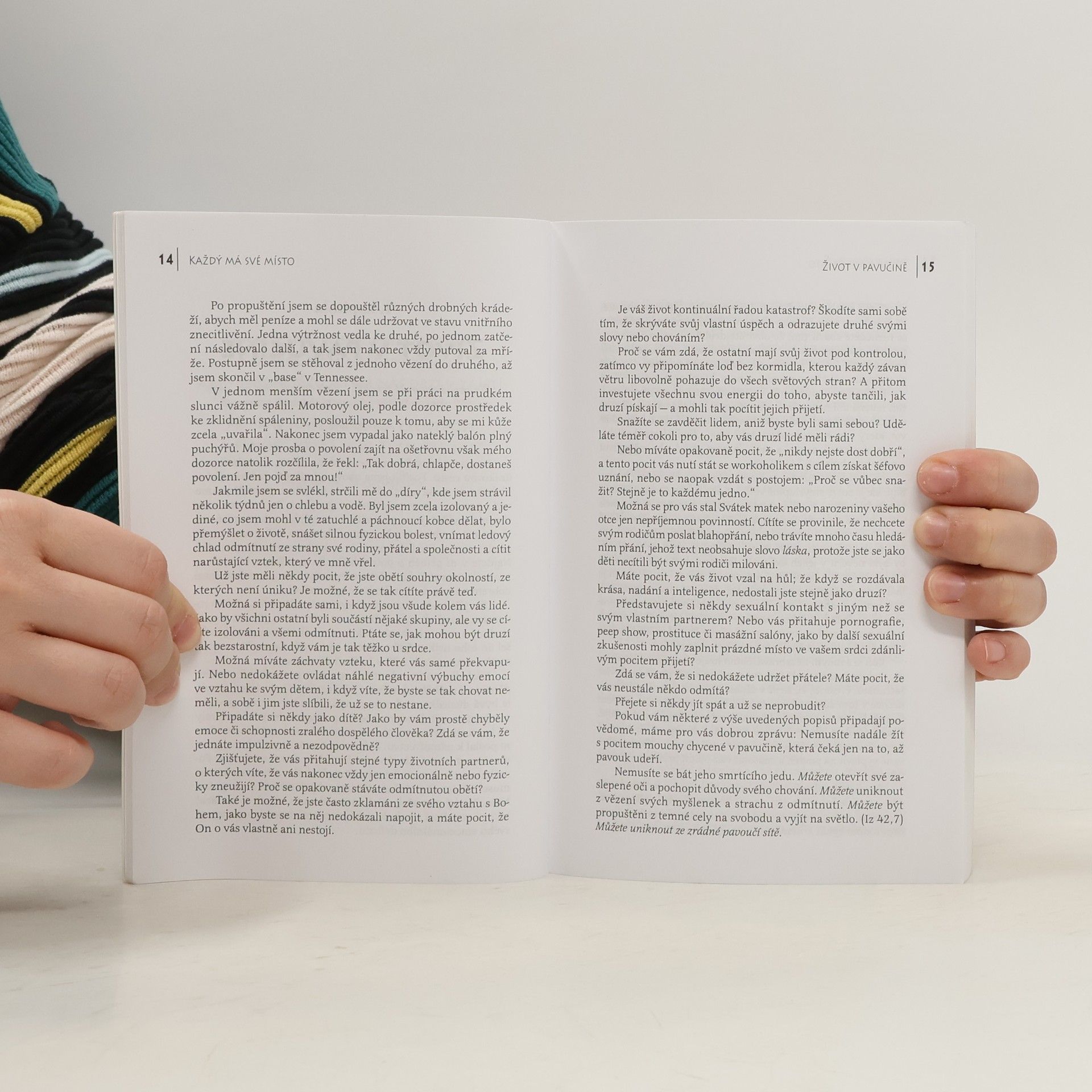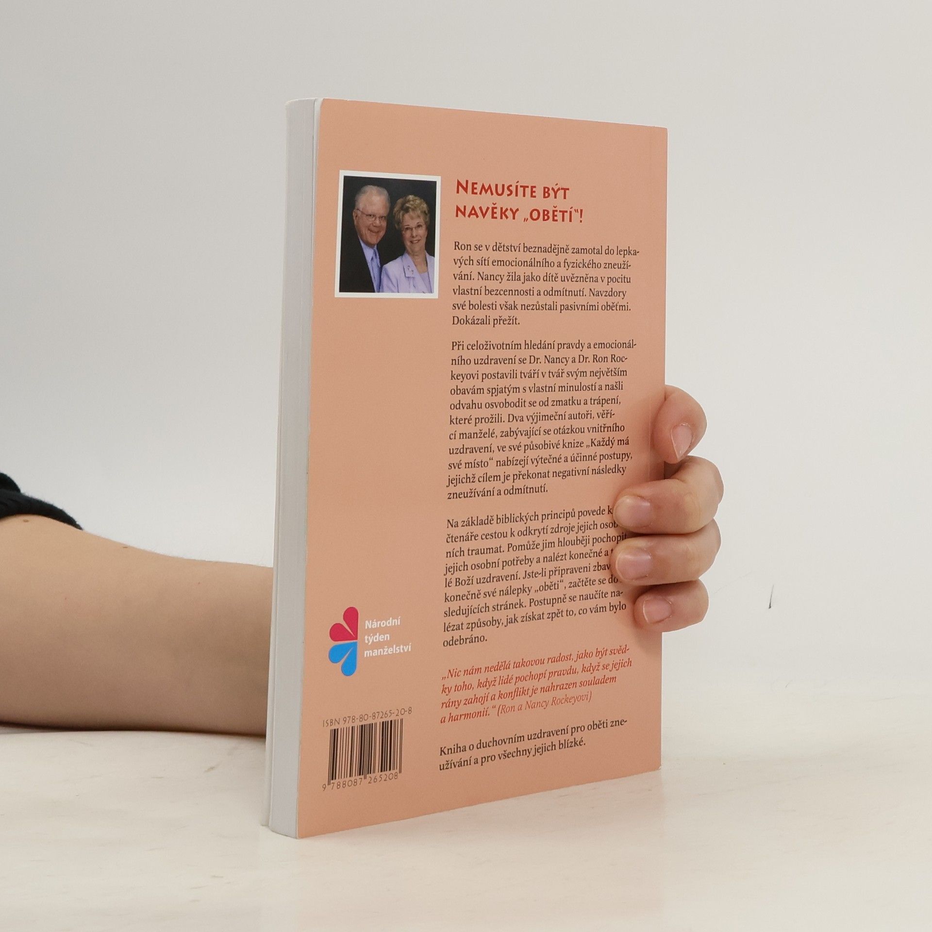 Ron se v dětství beznadějně zamotal do lepkavých sítí emocionálního a fyzického zneužívání. Nancy žila jako dítě uvězněna v pocitu vlastní bezcennosti a odmítnutí. Navzdory své bolesti však nezůstali pasivními oběťmi. Dokázali přežít. Při celoživotním hledání pravdy a emocionálního uzdravení se Dr. Nancy a Dr. Ron Rockeyovi postavili tváří v tvář svým největším obavám spjatým s vlastní minulostí a našli odvahu osvobodit se od zmatku a trápení, které prožili. Dva výjimeční autoři, věřící manželé, zabývající se otázkou vnitřního uzdravení, ve své působivé knize Každý má své místo nabízejí výtečné a účinné postupy, jejichž cílem je překonat negativní následky zneužívání a odmítnutí. Na základě biblických principů povede kniha čtenáře cestou k odkrytí zdroje jejich osobních traumat. Pomůže jim hlouběji pochopit jejich osobní potřeby a nalézt konečné a trvalé Boží uzdravení. Jste-li připraveni zbavit se konečně své nálepky "oběti", začtěte se do následujících stránek. Postupně se naučíte nalézat způsoby, jak získat zpět to, co vám bylo odebráno.