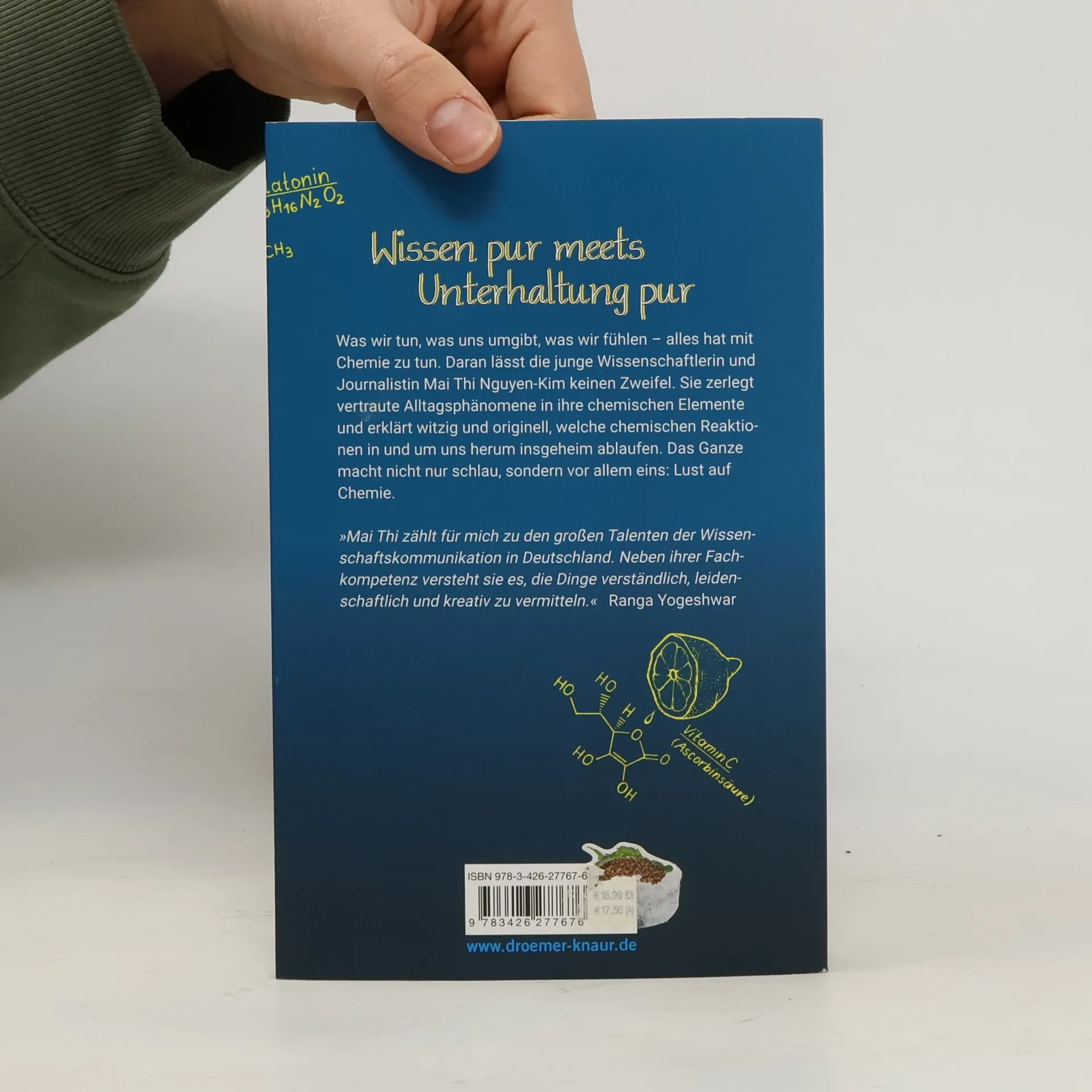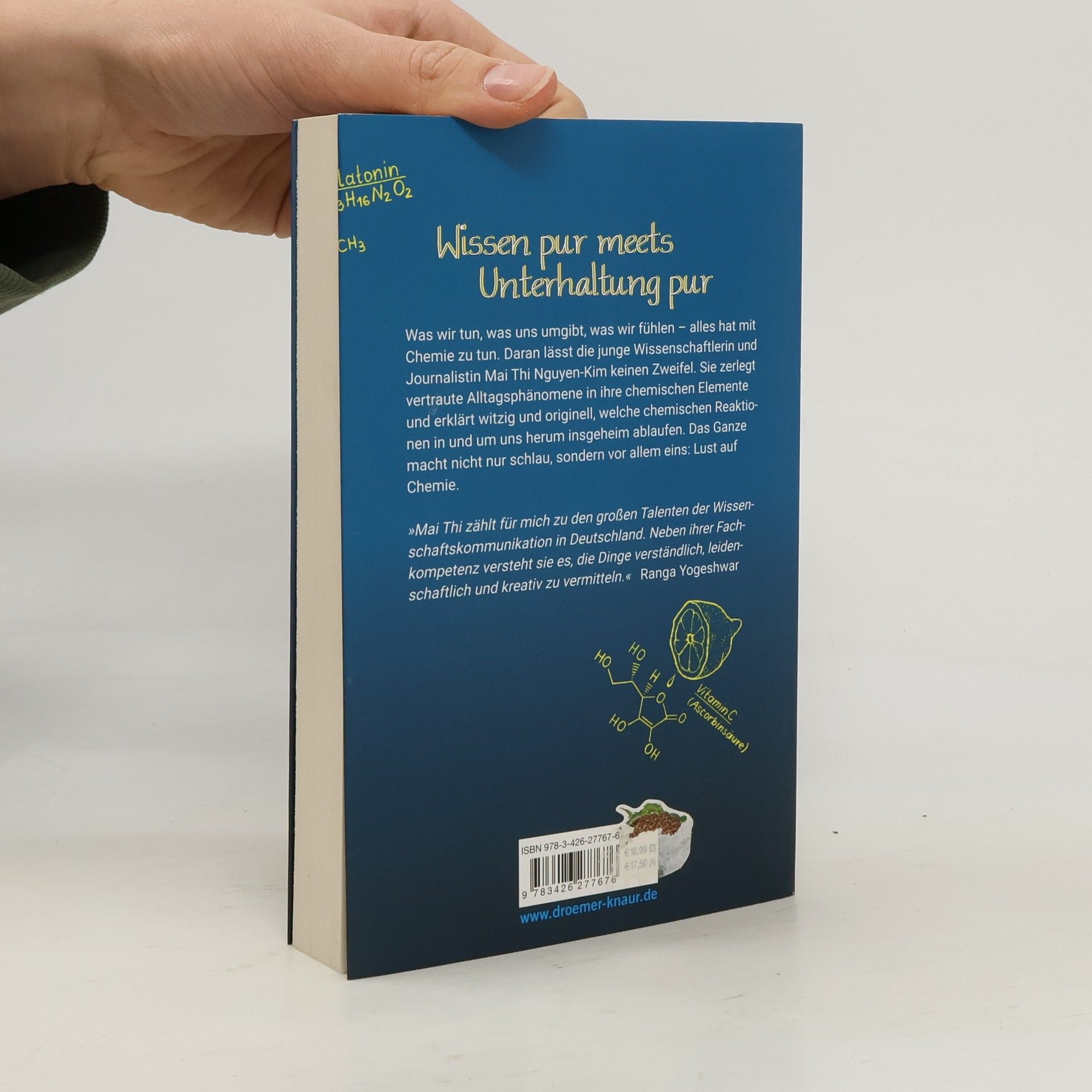 Chemie ist alles – sie beeinflusst unser Tun, unsere Umgebung und unsere Gefühle. Die junge Wissenschaftlerin und Journalistin Mai Thi Nguyen-Kim beweist in diesem spannenden Pop-Science-Buch, dass Alltagsphänomene chemische Elemente enthalten. Mit Witz und Originalität erklärt sie die geheimen chemischen Reaktionen um uns herum und weckt die Lust auf Chemie. Ihr Tagesablauf dient als roter Faden durch die Welt der organischen, anorganischen und physikalischen Chemie: Der Tag beginnt mit der Chemie des Aufwachens, den Melatonin- und Cortisol-Spiegeln. Wir lernen den optimalen Zeitpunkt für den ersten Kaffee kennen, erfahren, warum Fluoride in Zahnpasta wichtig sind und warum das Chaos auf dem Schreibtisch vom Universum gewollt ist. Zudem gibt es spannende Einblicke in die Zusammensetzung von Gorillaglas und die Funktionsweise von Handyakkus, inklusive Tipps zur Verlängerung ihrer Lebensdauer und zur Vermeidung von Explosionen. Wir entdecken, warum nur Aluminiumsalze gegen Schweißflecken helfen und was man gegen den Schweißgeruch tun kann. Im Supermarkt klärt Mai Thi, ob sauerstoffangereichertes „Sport-Mineralwasser“ wirklich sinnvoll ist. Am Abend enthüllt sie das Geheimnis eines perfekten Schokotörtchens und erklärt, was auf molekularer Ebene passiert, wenn die Chemie zwischen zwei Menschen stimmt.