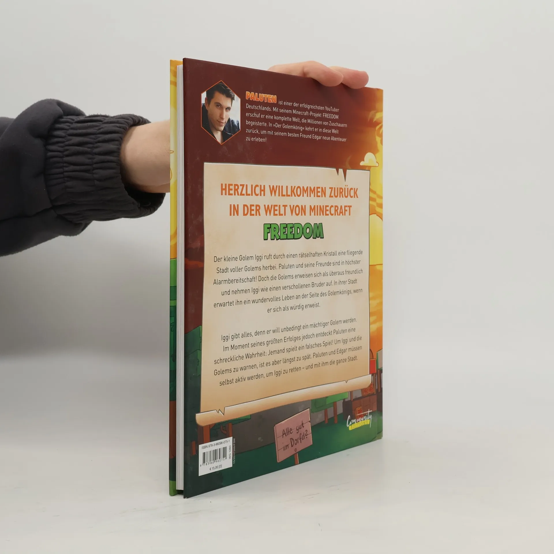 Nach dem Direkteinstieg der Schmahamas-Verschwörung auf Platz 1 der SPIEGEL-Bestsellerliste kommt endlich eine neue Geschichte aus der Welt von FREEDOM: Palutens erster Comic! Dieses Mal dreht sich alles um den kleinen Golem Iggi, bekannt aus dem YouTube-Projekt FREEDOM, der durch einen rätselhaften Kristall eine fliegende Stadt voller Golems herbeiruft. Paluten und seine Freunde sind in höchster Alarmbereitschaft! Doch die Golems erweisen sich als überaus freundlich und nehmen Iggi wie einen verschollenen Bruder auf. In ihrer Stadt erwartet ihn ein wundervolles Leben an der Seite des Golem-Königs, wenn er sich als würdig erweist. Iggi gibt alles, denn er will unbedingt ein mächtiger Golem werden. Im Moment seines größten Erfolges jedoch entdeckt Paluten eine schreckliche Wahrheit: Jemand spielt ein falsches Spiel! Um Iggi und die Golems zu warnen, ist es längst zu spät. Paluten und Edgar müssen selbst aktiv werden, um Iggi zu retten - und mit ihm die ganze Stadt. Folgt Paluten, seinem besten Freund Edgar, Professor Ente und General Dieter in ein neues Abenteuer. Jede Menge Action und Explosions erwarten euch!
