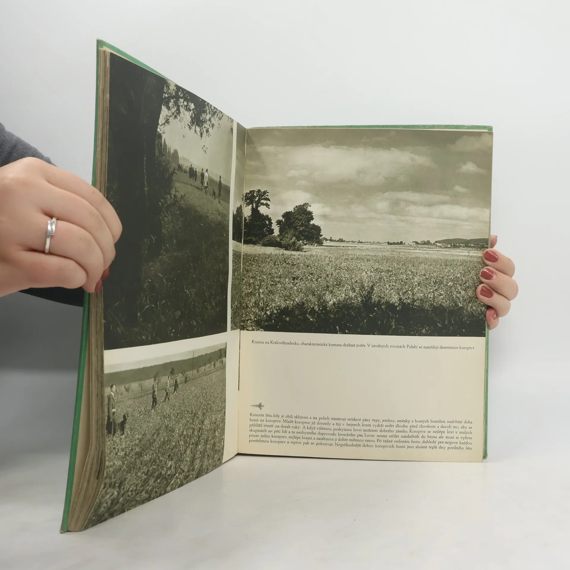 Kniha obsahuje soubor fotografií, podávajících stručný obraz československé myslivosti ve všech jejich obdobích. Snímky zachycují naše hlavní lovná zvířata (zajíce, koroptve, srnce, jeleny, vzácné oborní druhy) živá v přirozeném prostředí, jakož i různé druhy lovu, jež se uplatňujív naší myslivosti (čekaná, polní nebo lesní ploužení, česká leč, naháňky, střílení, norování, fretkování atd.). Doprovodný text podává některá vysvětlení a poučení, vztahující se k mysliveckému hospodaření.