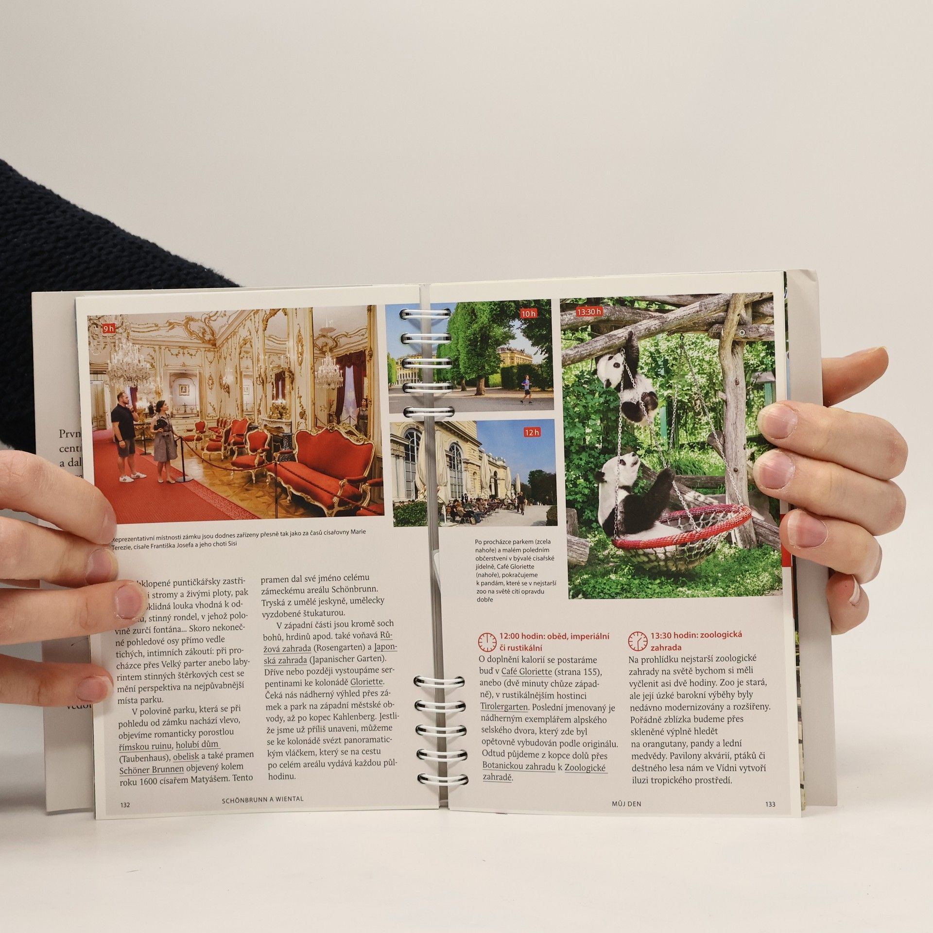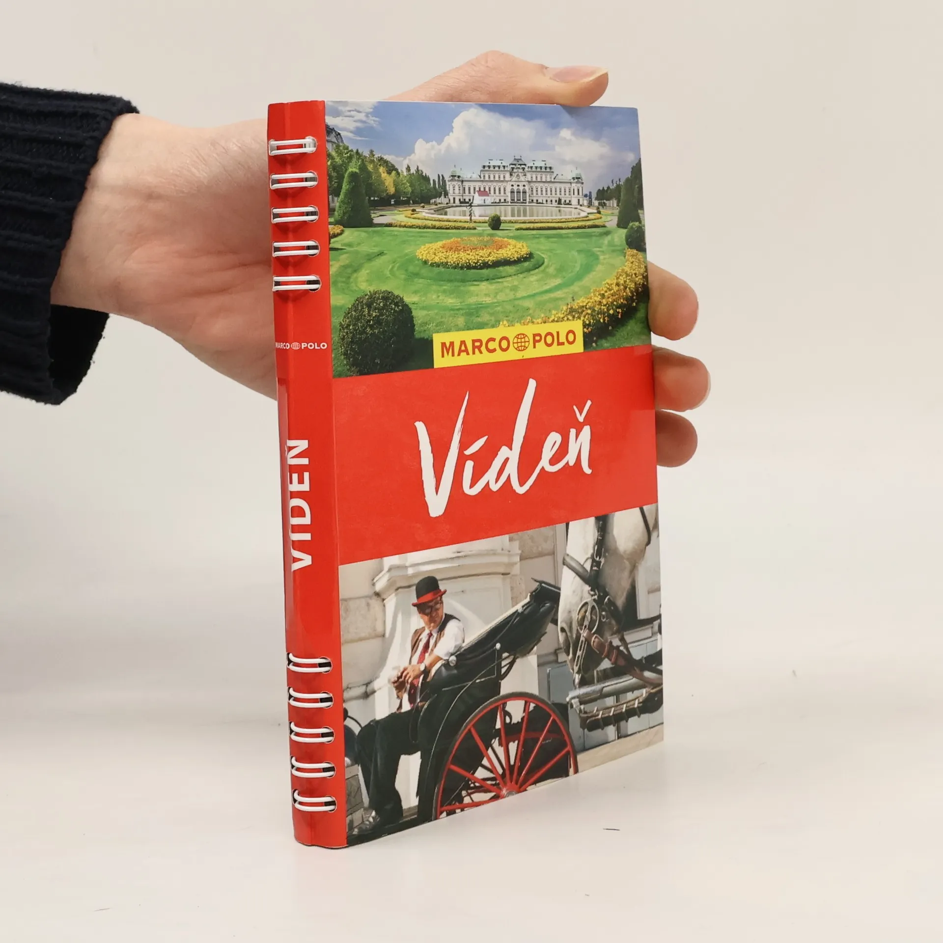 Turistický průvodce na spirále, s plánem města ------------------- TOP 10 Kouzlo Vídně Všehochuť informací Úvodní seznámení Srdce města Středověká Vídeň Západní část Ringstraße Schönbrunn a Wiental Belveder, Prátr a Dunaj Procházky Praktické informace Slovníček Plán města