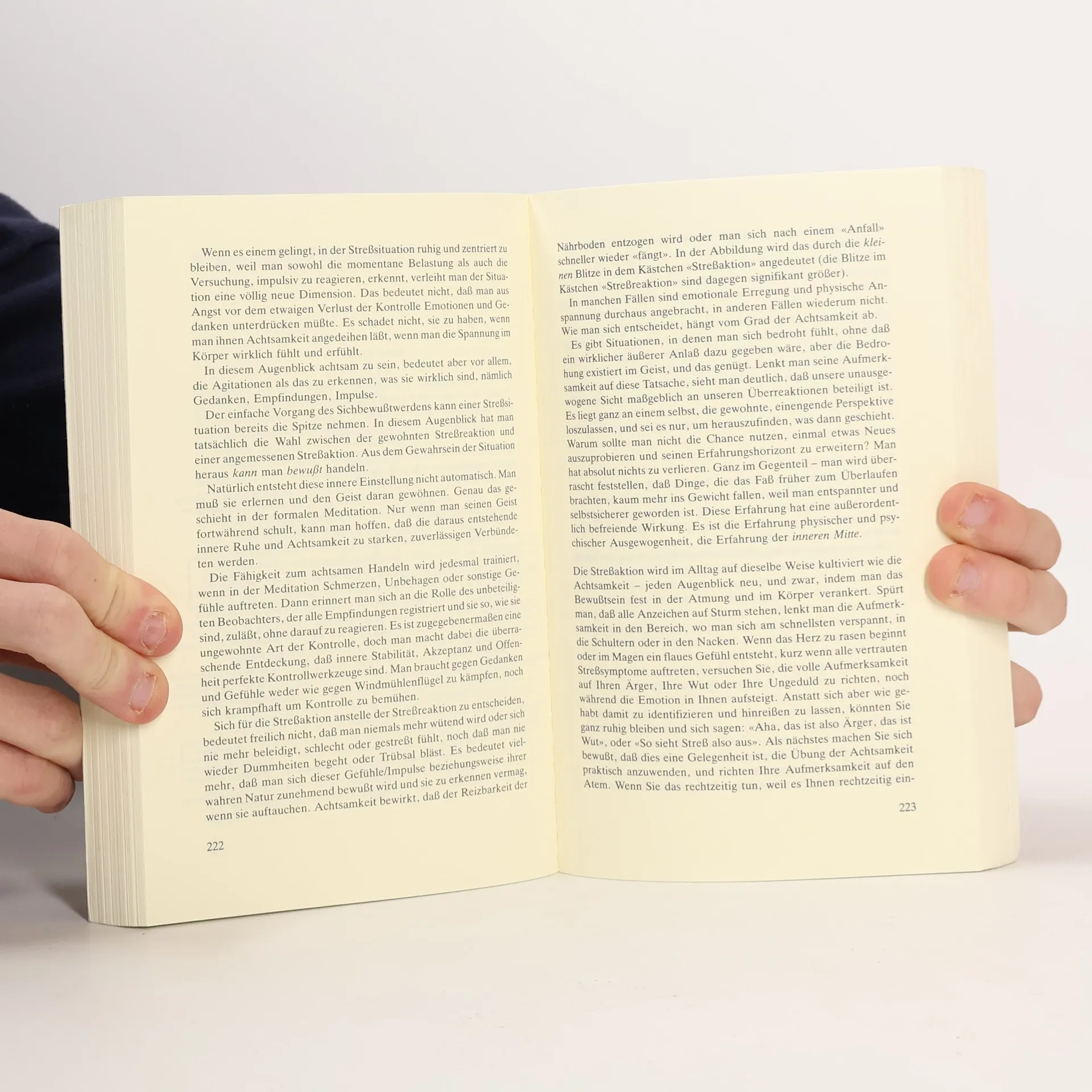 MBSR (mindfulness-based stress reduction) ist ein wissenschaftlich geprüftes Achtsamkeits-Training bestehend aus Meditationen, Atem- und Yogaübungen. Der weltweit renommierte Achtsamkeits-Lehrer und Meditations-Forscher Jon Kabat-Zinn hat mit der MBSR-Methode Meditation für das alltägliche Leben der Menschen zugänglich gemacht – mit all seinen Schwierigkeiten, Stressphasen und auch gesundheitlichen Problemen (die Originalausgabe heißt bezeichnenderweise „Full Catastrophe Living“). Wie hilfreich eine solche Praxis gerade in herausfordernden Zeiten sein kann, wird nirgendwo so deutlich, wie in diesem Grundlagenbuch. „Gesund durch Meditation“ ist zu einem der erfolgreichsten Bücher für das sukzessive Erlangen von Gelassenheit, Präsenz und nachhaltiger Gesundheit geworden. Chronisch kranke Menschen und Schmerzpatienten finden hier hilfreiche Hinweise für einen entspannten Umgang mit ihren Beschwerden. Das Phänomen Stress wird anschaulich erläutert und nachhaltige Maßnahmen für eine veränderte innere Haltung und Einstellung zum Leben angeboten.Die beliebte Kurzfassung des Klassikers erscheint hier wieder als Taschenbuch in einer unveränderten Neuausgabe. Die ungekürzte Langfassung ist unter demselben Titel als Hardcover erhältlich.